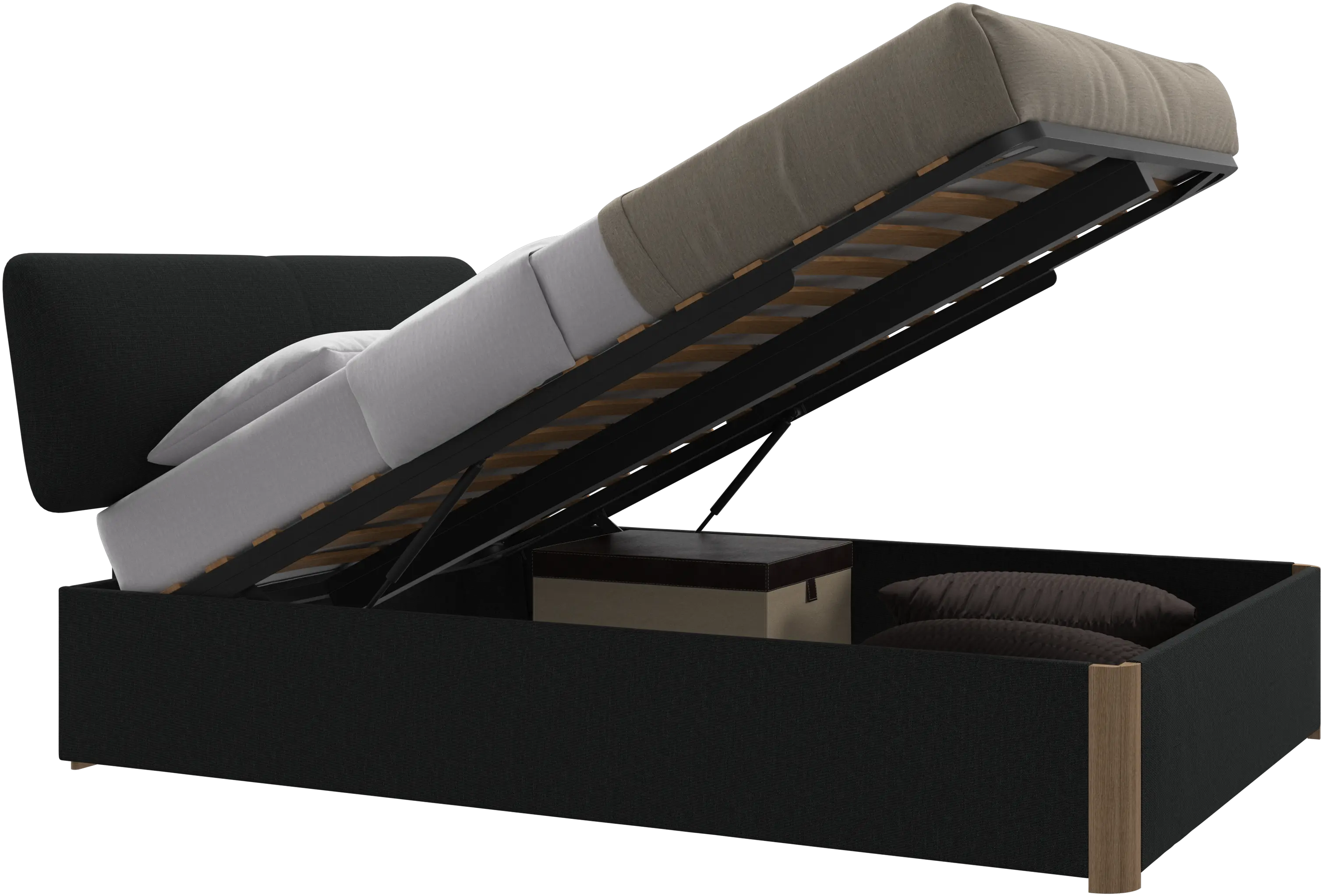 Element bed, bed-mounted headboard, with slats and storage solution, excl. mattress
