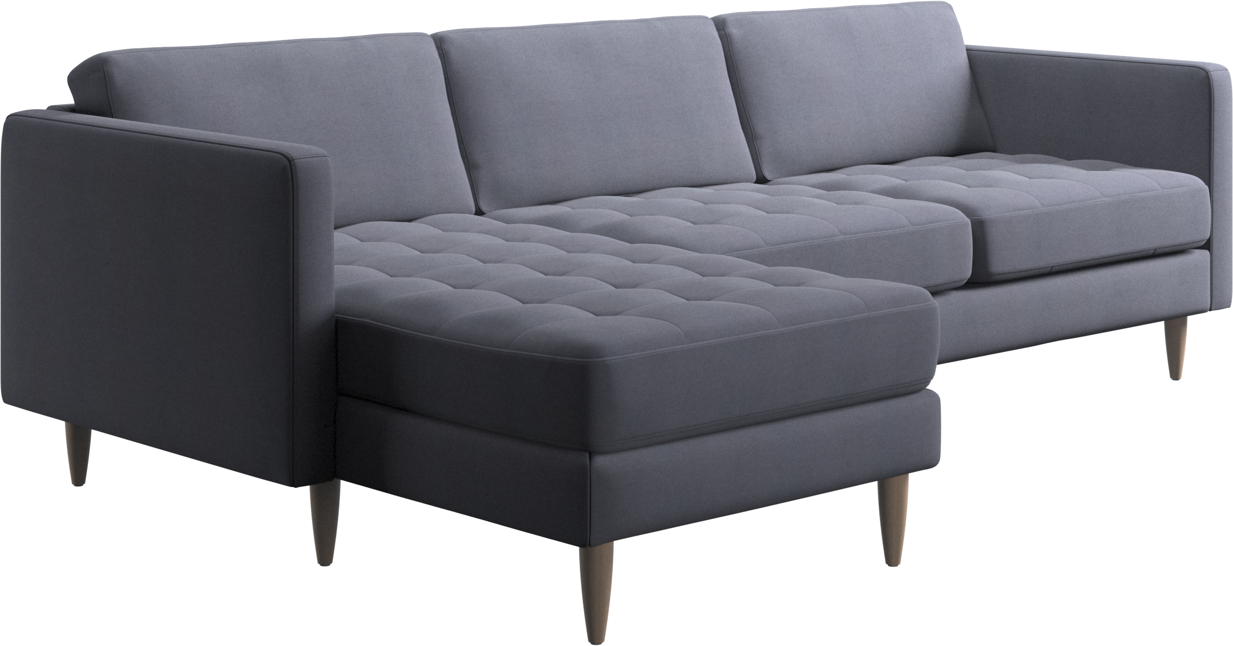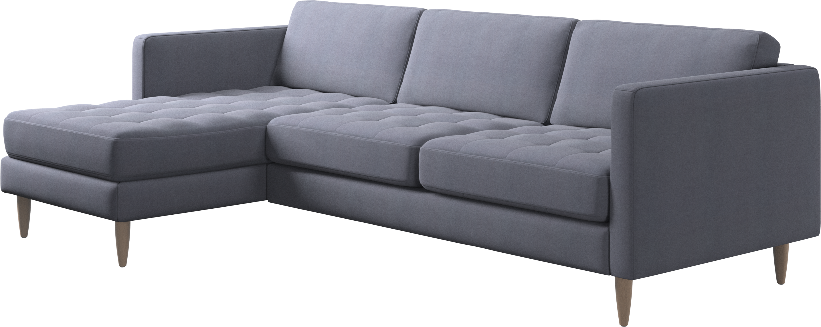 A light look and slim proportions make the Osaka sofa perfect for small homes, while a subtle feminine look and a touch of 60s design ensure that the Osaka sofa still packs a style punch. The beautiful tufted seats add visual softness and bring a classic look to your living room. The classic, straight armrests emphasise the clean lines and Scandinavian look. Put your feet up, stretch out or use it as an extra seat – you won’t be sorry for choosing this comfortable chaise longue sofa.