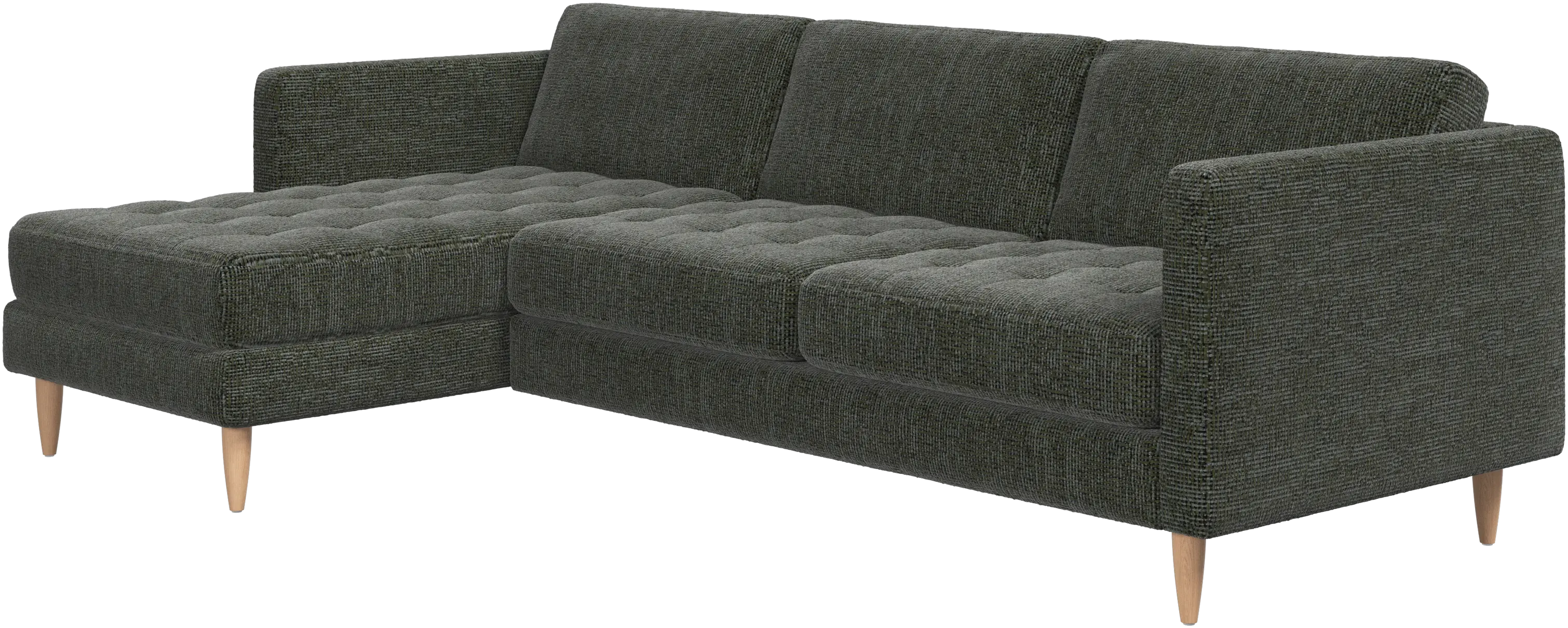 A light look and slim proportions make the Osaka sofa perfect for small homes, while a subtle feminine look and a touch of 60s design ensure that the Osaka sofa still packs a style punch. The beautiful tufted seats add visual softness and bring a classic look to your living room. The classic, straight armrests emphasise the clean lines and Scandinavian look. Put your feet up, stretch out or use it as an extra seat – you won’t be sorry for choosing this comfortable chaise longue sofa.