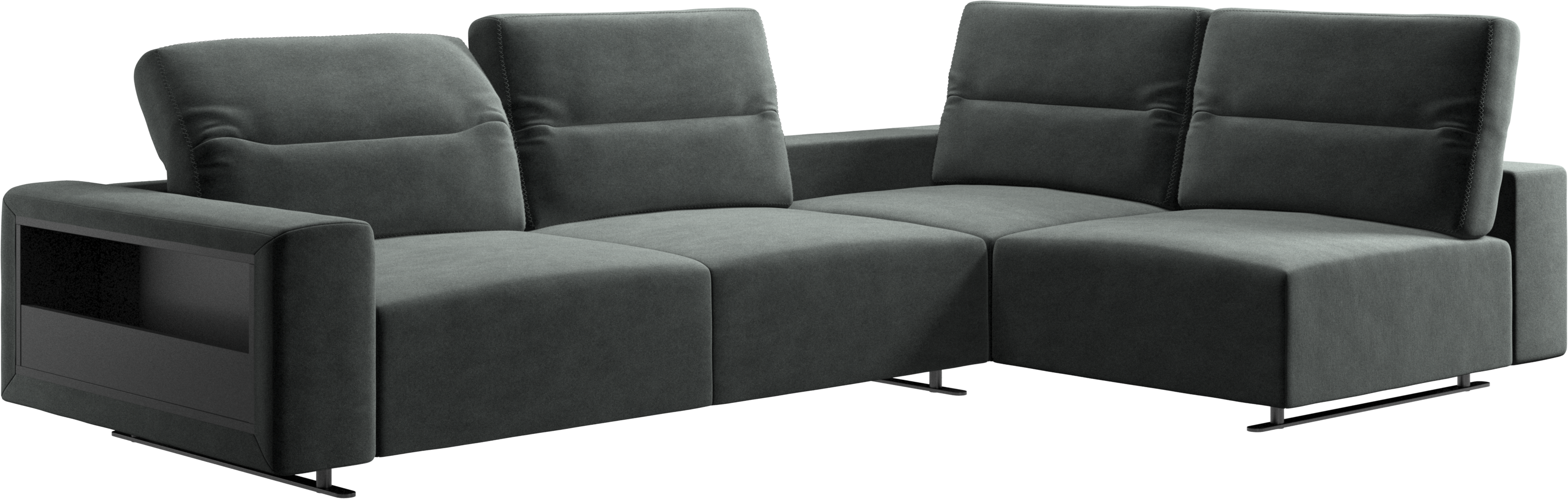 We know. It’s beautiful. But the modern Hampton sofa is much more than just good looks. A low base, a stunning loft look, adjustable backrests for comfort and visual impact – the Hampton sofa is the perfect personal retreat. The open end will create a dynamic, welcoming atmosphere - a true blessing for the integrated areas of open-plan living. And with clever built-in storage in the armrest, you will always have your living room essentials at hand.