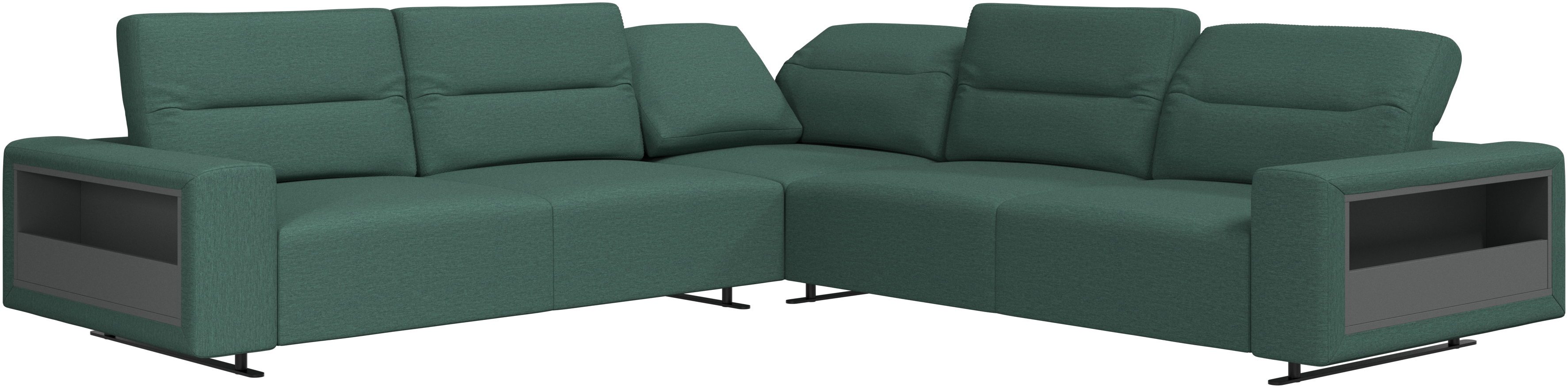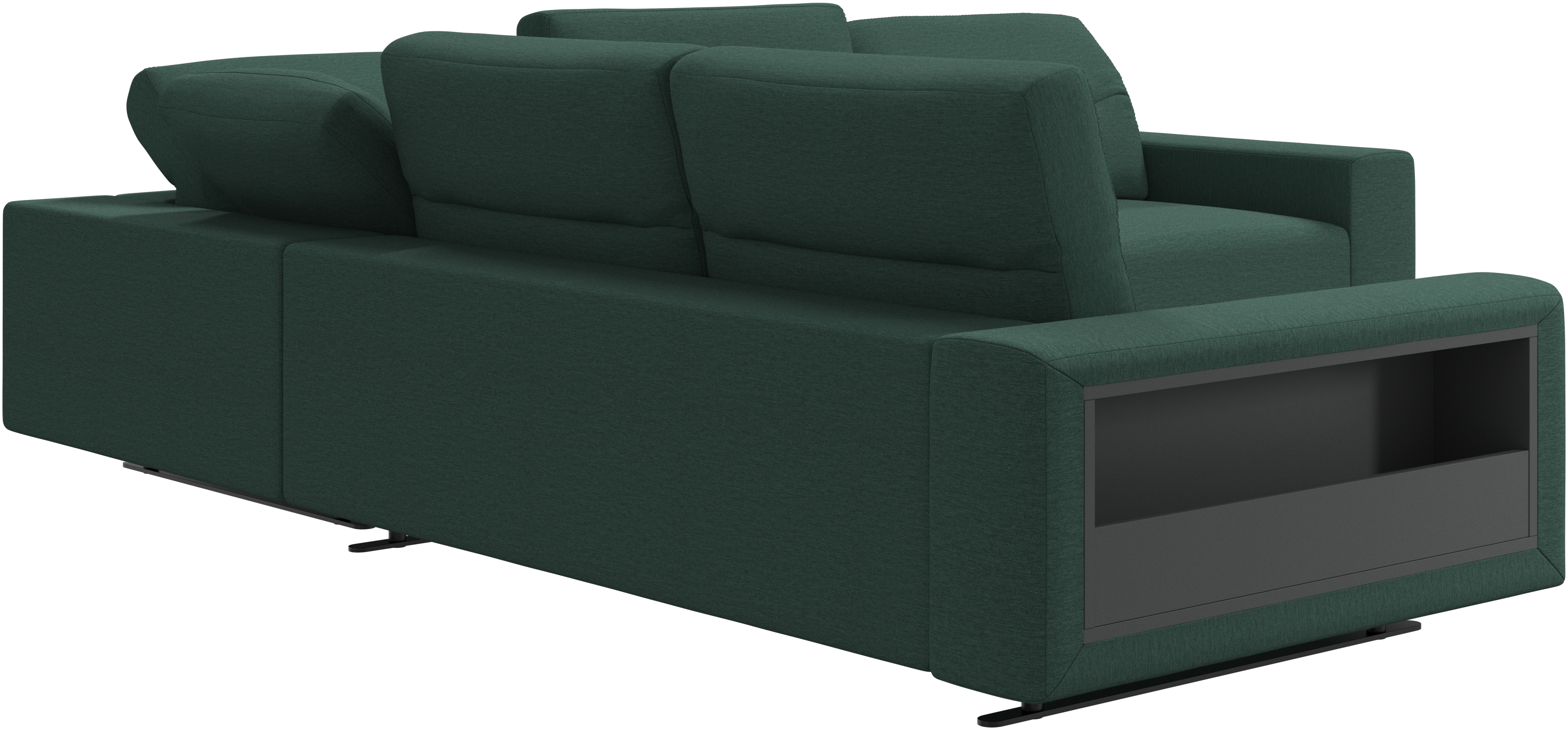 Store books, magazines and the likes in the integrated storage solutions available in arm rests and the footstool.