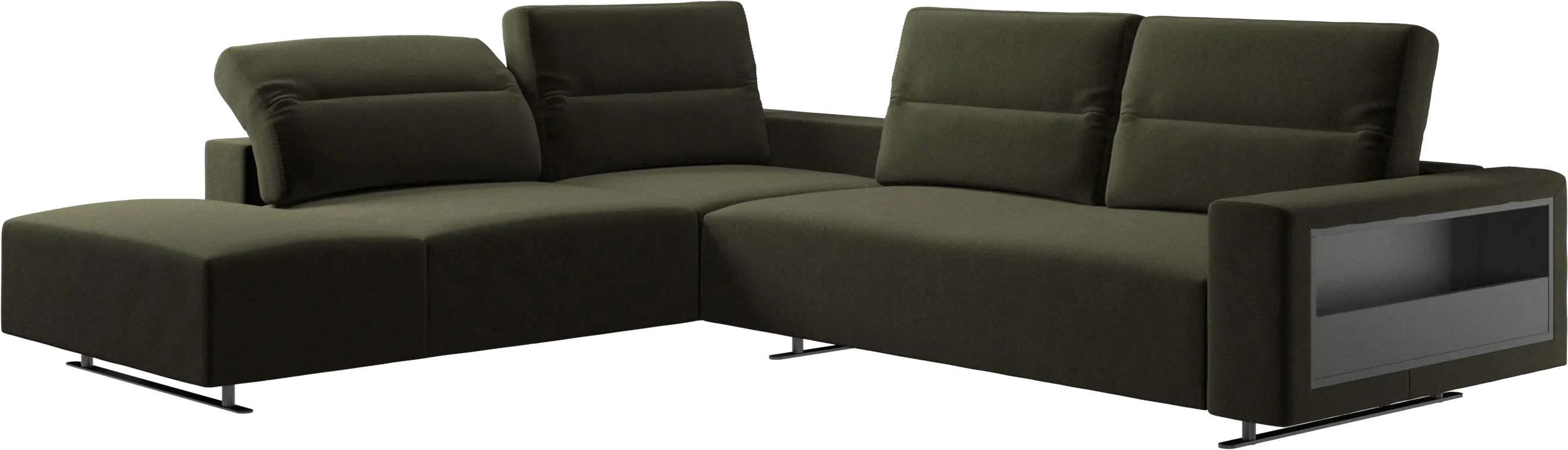 We know. It’s beautiful. But the modern Hampton sofa is much more than just good looks. A low base, a stunning loft look, adjustable backrests for comfort and visual impact – the Hampton sofa is the perfect personal retreat. The open end will create a dynamic, welcoming atmosphere - a true blessing for the integrated areas of open-plan living. And with clever built-in storage in the armrest, you will always have your living room essentials at hand.