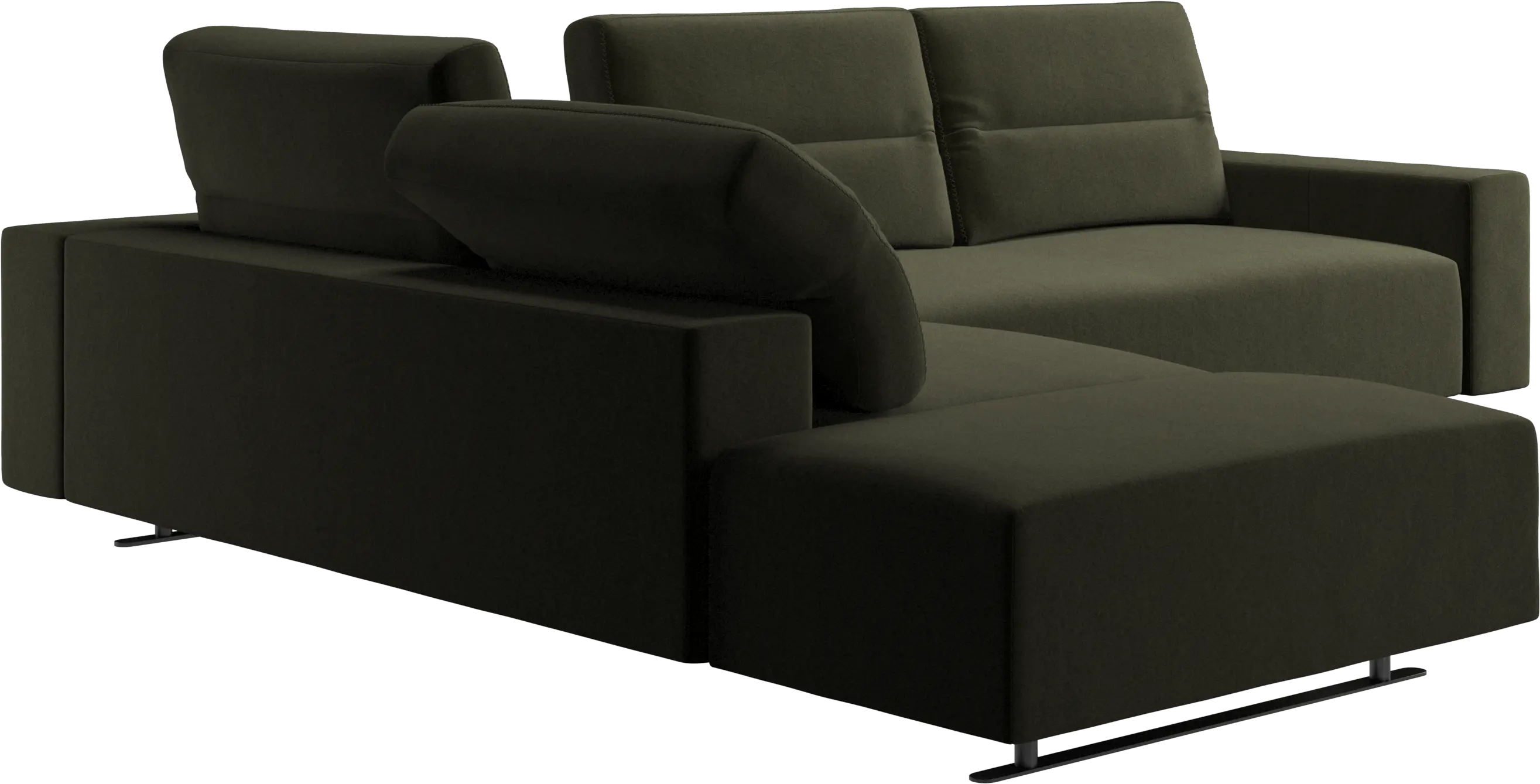 The total depth of the seat is 107 cm meaning wide enough to sleep on. To ensure optimal support despite this deep seating area, a lumbar cushion and a scatter cushion are available in coordinated fabrics and leathers.
