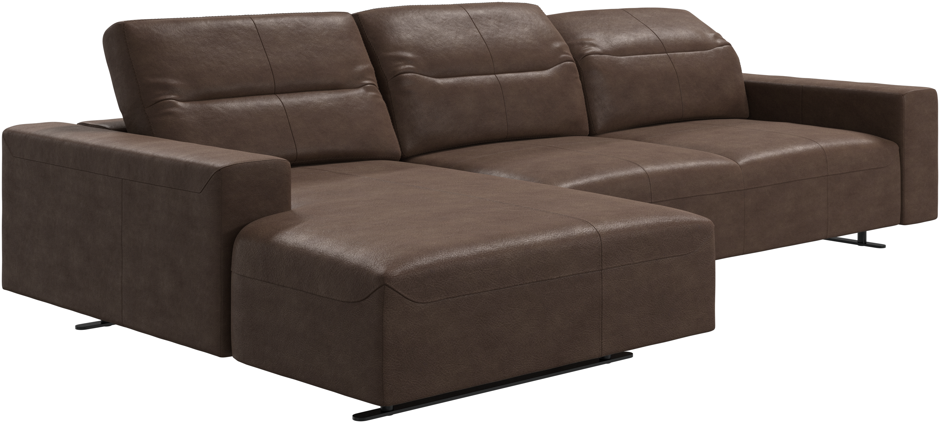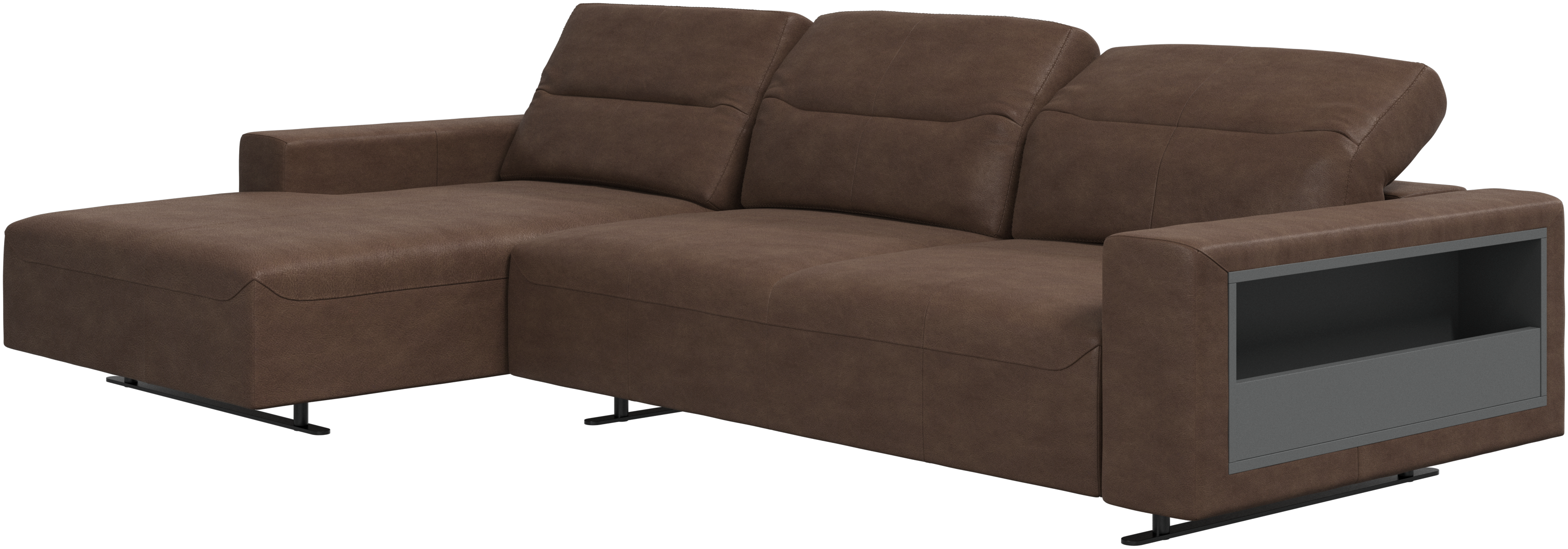 We know. It’s beautiful. But the modern Hampton sofa is much more than just good looks. A low base, a stunning loft look, adjustable backrests for comfort and visual impact – the Hampton sofa is the perfect personal retreat. Put your feet up, stretch out or use it as an extra seat – you won’t be sorry for choosing this comfortable chaise longue sofa. And with clever built-in storage in the armrest, you will always have your living room essentials at hand.