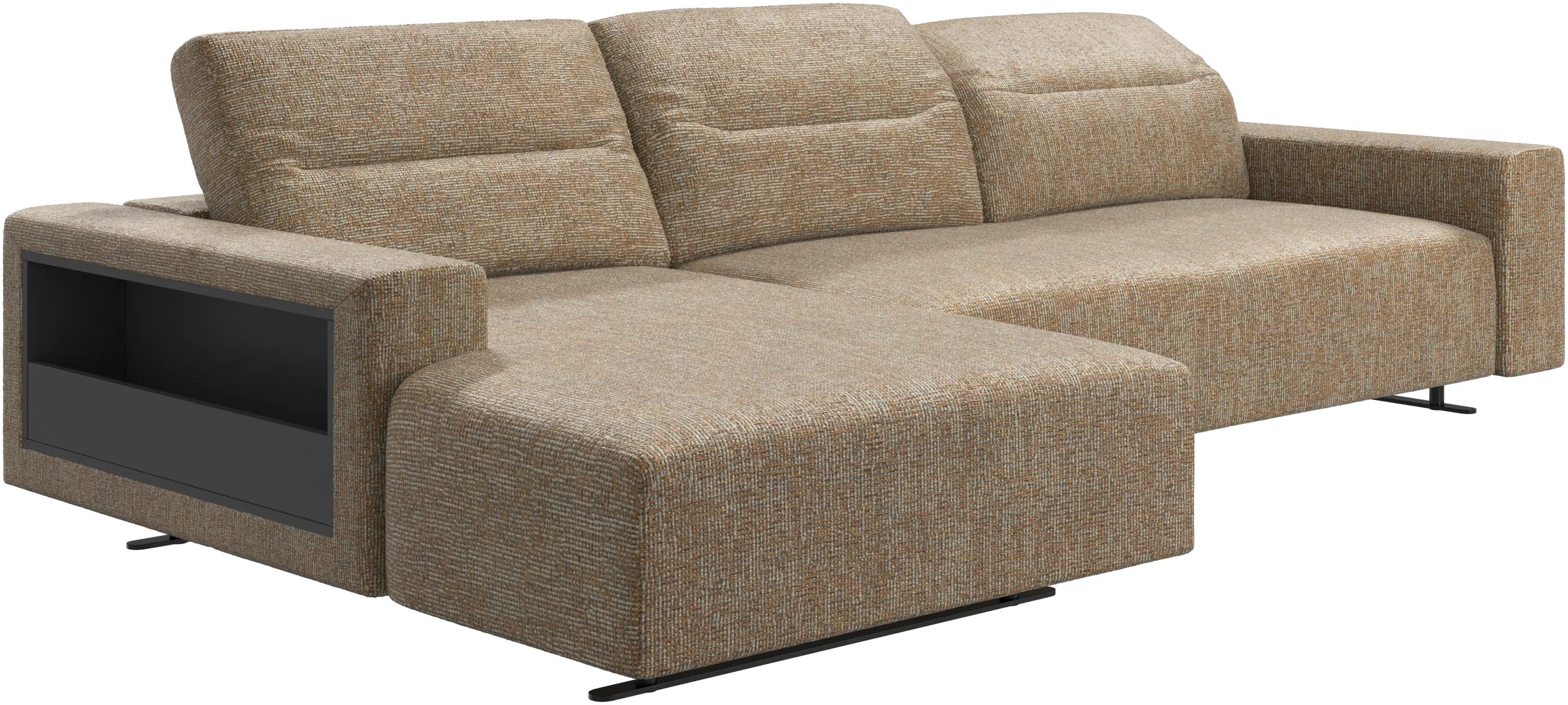 We know. It’s beautiful. But the modern Hampton sofa is much more than just good looks. A low base, a stunning loft look, adjustable backrests for comfort and visual impact – the Hampton sofa is the perfect personal retreat. Put your feet up, stretch out or use it as an extra seat – you won’t be sorry for choosing this comfortable chaise longue sofa. And with clever built-in storage in the armrest, you will always have your living room essentials at hand.