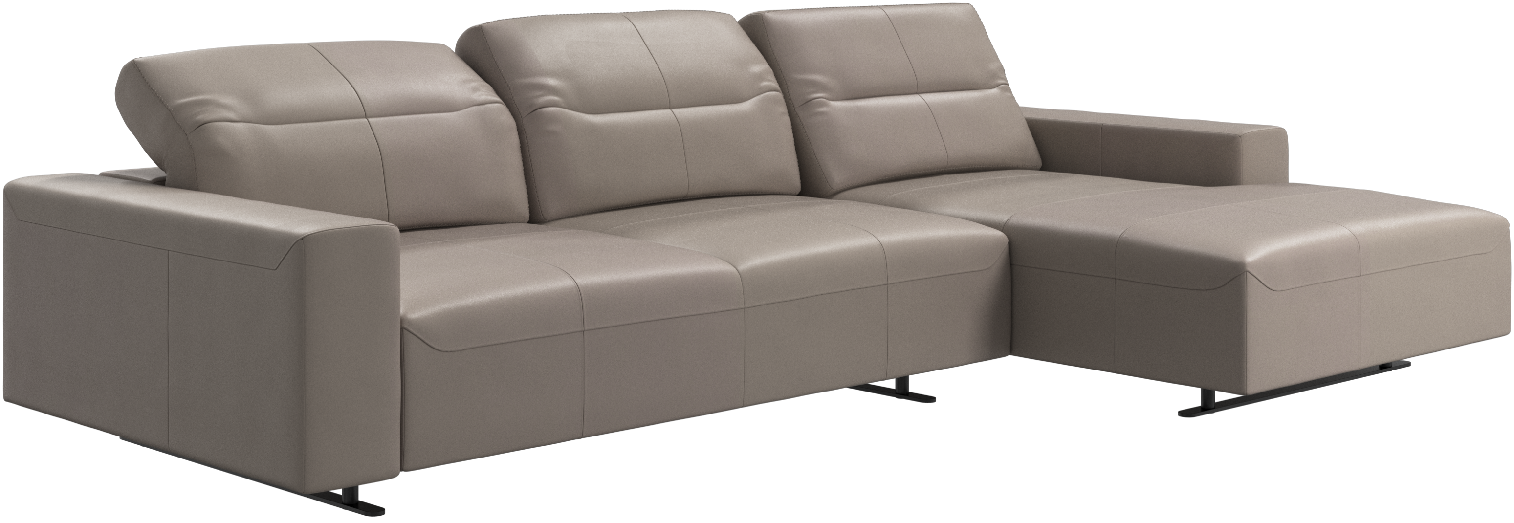 We know. It’s beautiful. But the modern Hampton sofa is much more than just good looks. A low base, a stunning loft look, adjustable backrests for comfort and visual impact – the Hampton sofa is the perfect personal retreat. Put your feet up, stretch out or use it as an extra seat – you won’t be sorry for choosing this comfortable chaise longue sofa. And with clever built-in storage in the armrest, you will always have your living room essentials at hand.