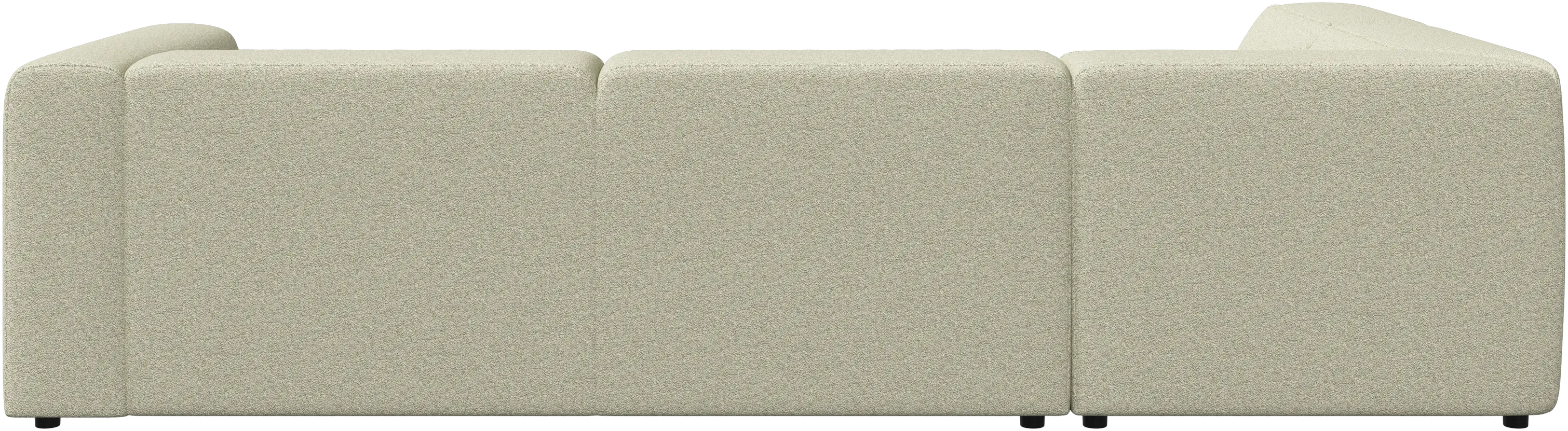 The low comfortable back has the same height as the armrest giving a fantastic seating comfort, especially in the corner.