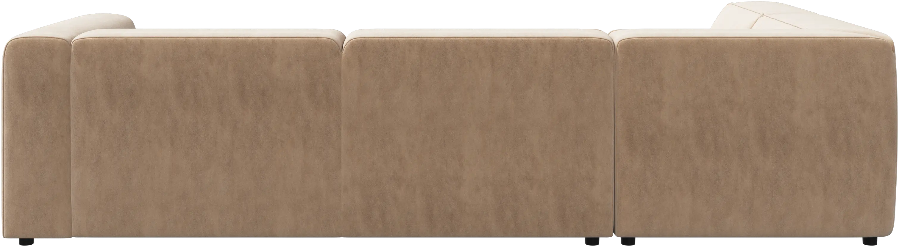 The low comfortable back has the same height as the armrest giving a fantastic seating comfort, especially in the corner.