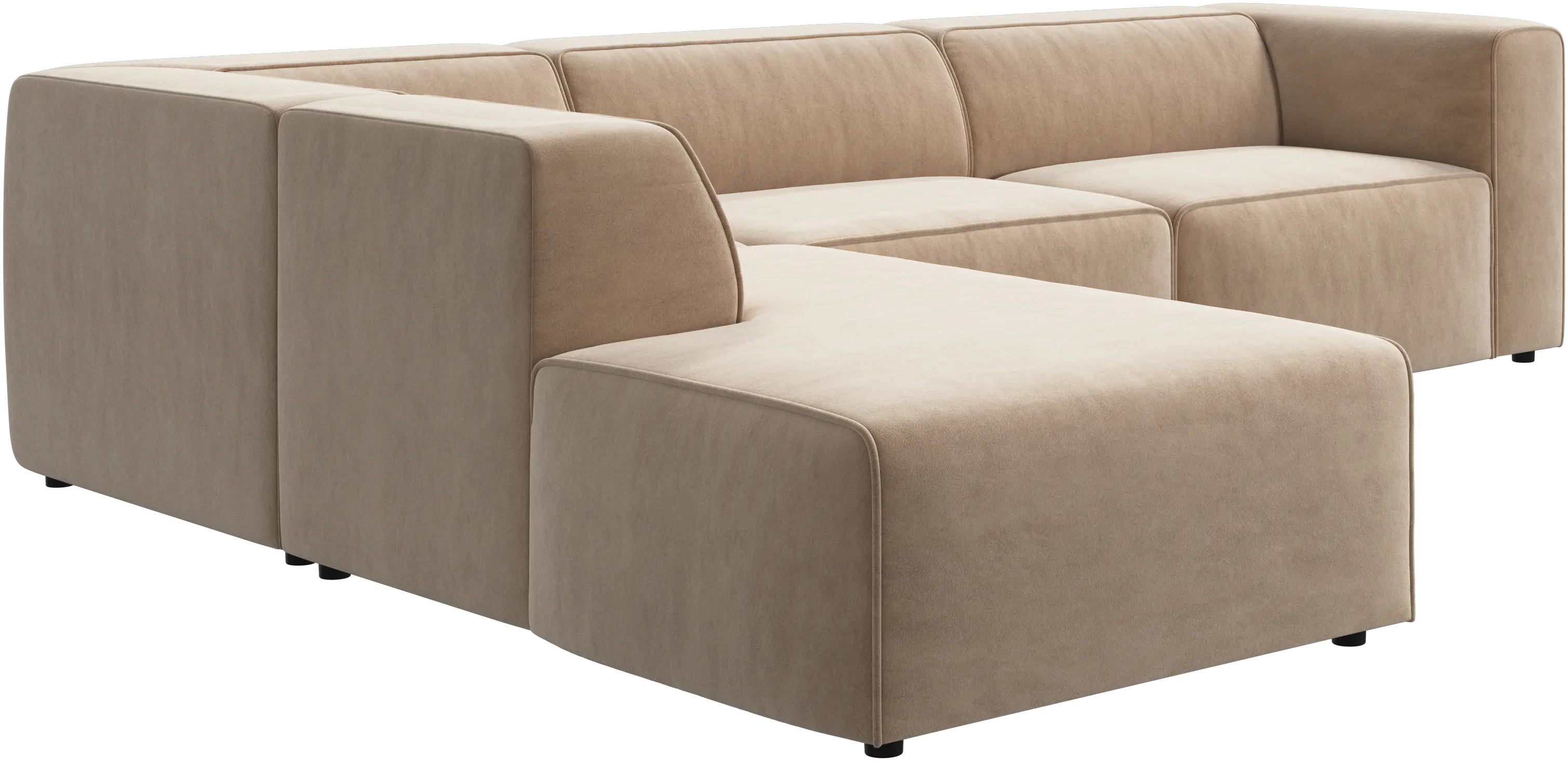 Carmo is a modular sofa system that can be bought as single modules. When doing so, the modules come fully upholstered with crocodile connectors ensuring easy attachment and detachment.