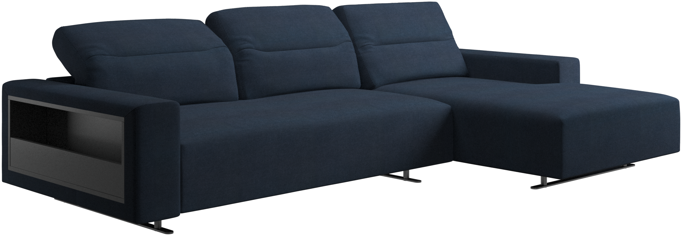 We know. It’s beautiful. But the modern Hampton sofa is much more than just good looks. A low base, a stunning loft look, adjustable backrests for comfort and visual impact – the Hampton sofa is the perfect personal retreat. Put your feet up, stretch out or use it as an extra seat – you won’t be sorry for choosing this comfortable chaise longue sofa. And with clever built-in storage in the armrest, you will always have your living room essentials at hand.