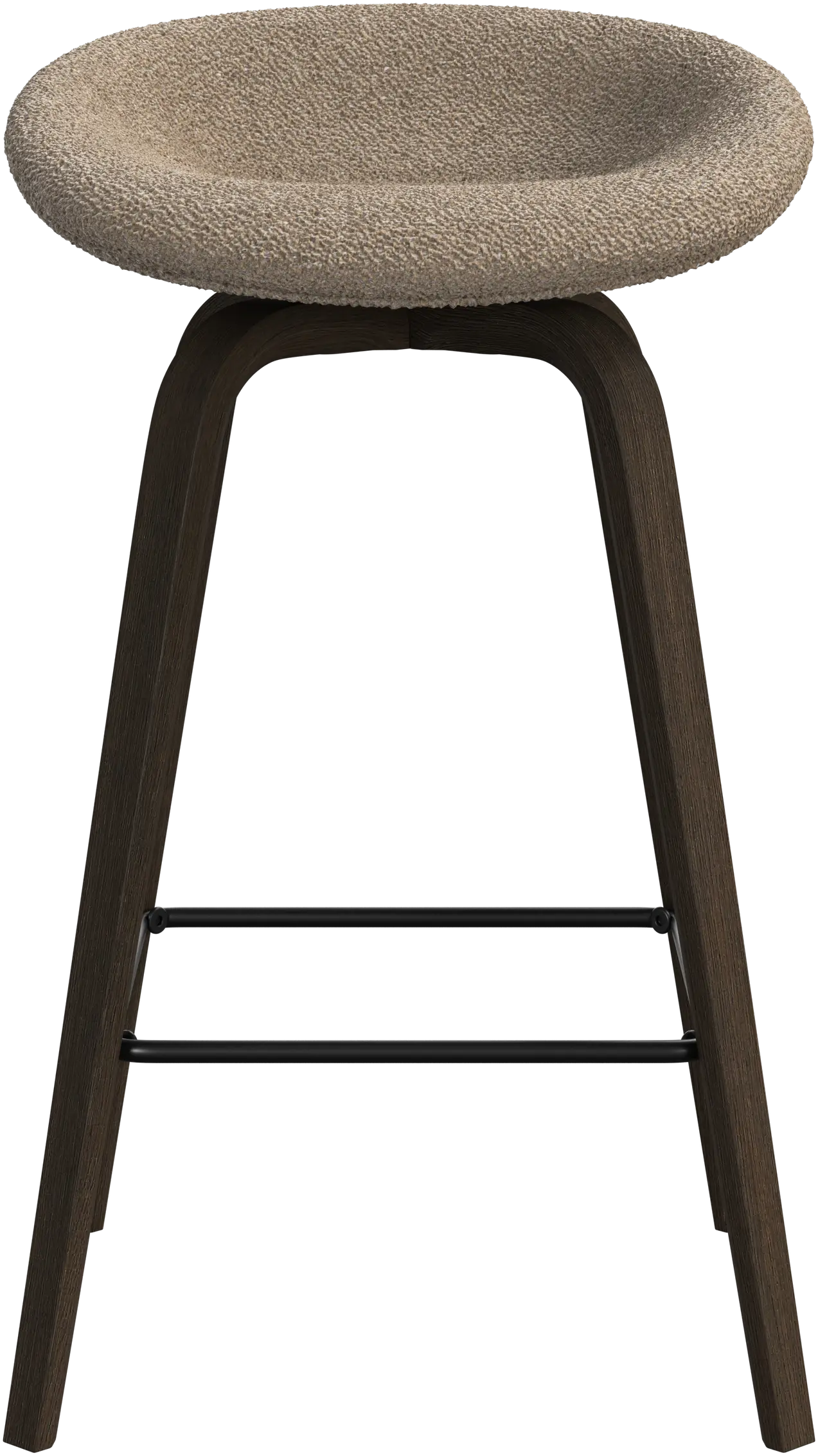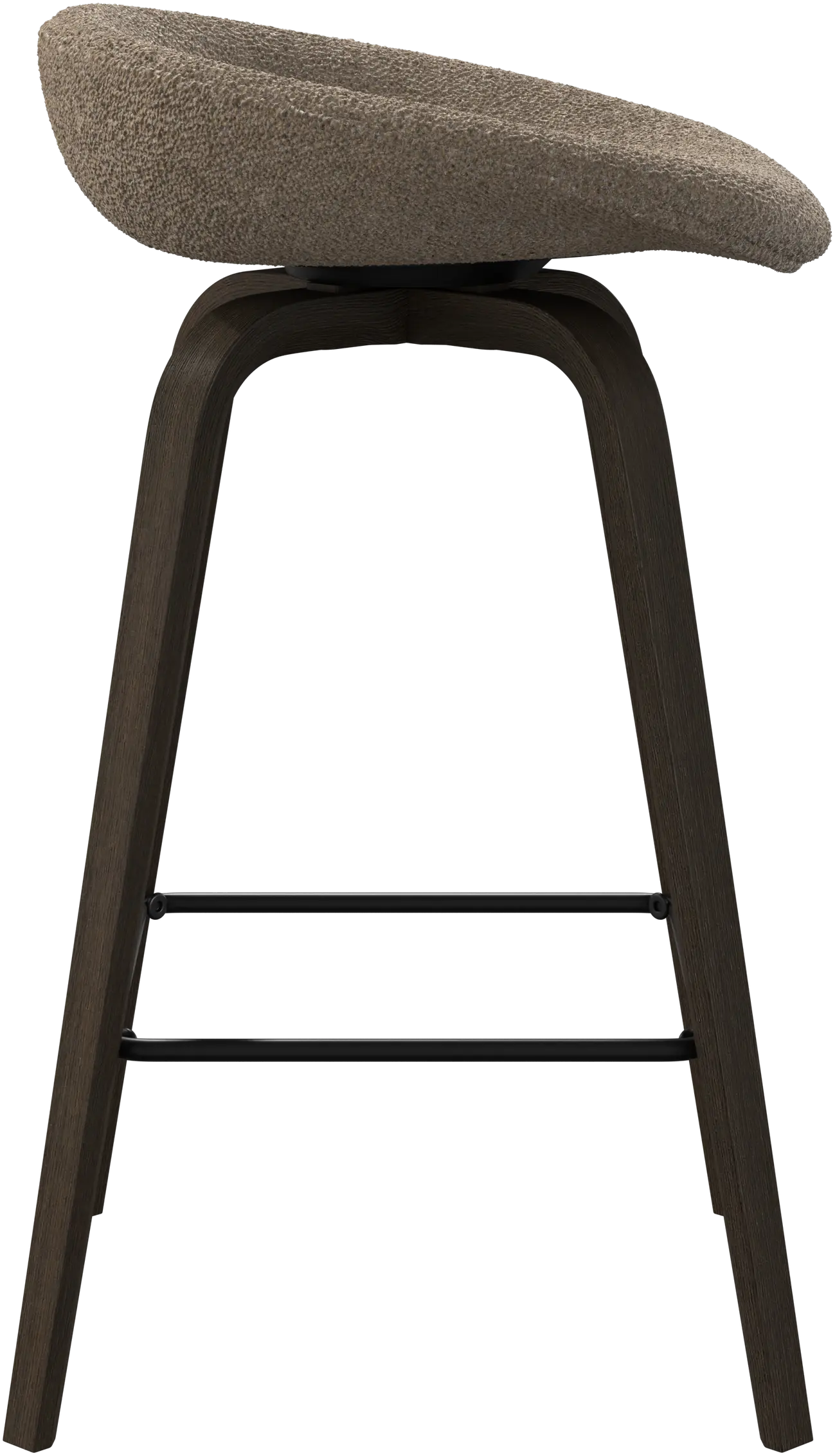 With a soft, organic form, the Hauge bar stool is your stylish solution for elevated seating. It has a fixed height to fit your home bar or open kitchen space and a metal footrest for contemporary comfort.