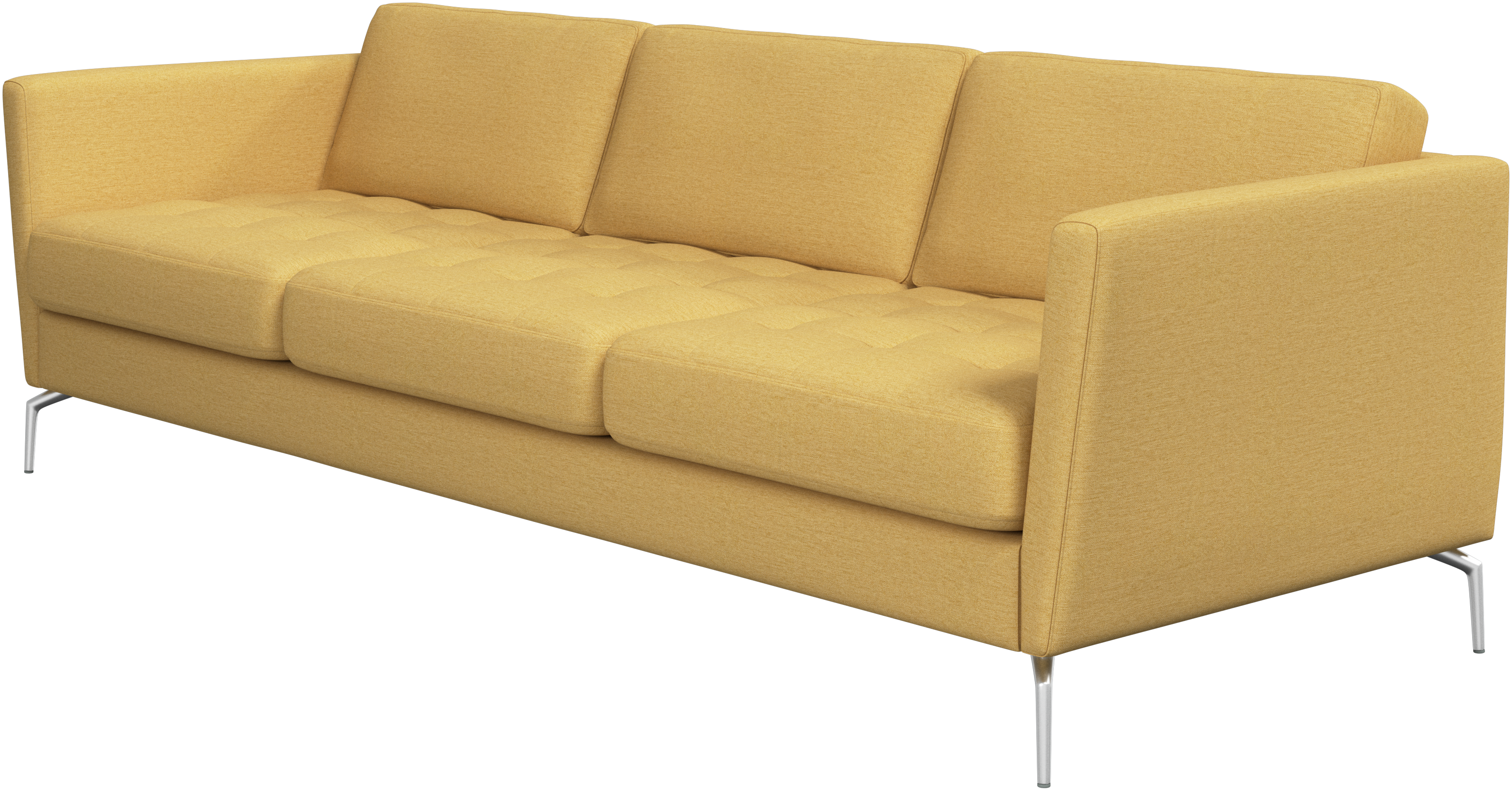 A light look and slim proportions make the Osaka sofa perfect for small homes, while a subtle feminine look and a touch of 60s design ensure that the Osaka sofa still packs a style punch. The beautiful tufted seats add visual softness and bring a classic look to your living room. Inclined armrests give the sofa a modern, unique look and open it up to the rest of the room. Cosy up with your family or claim the sofa all to yourself with this roomy 3 seater sofa.
