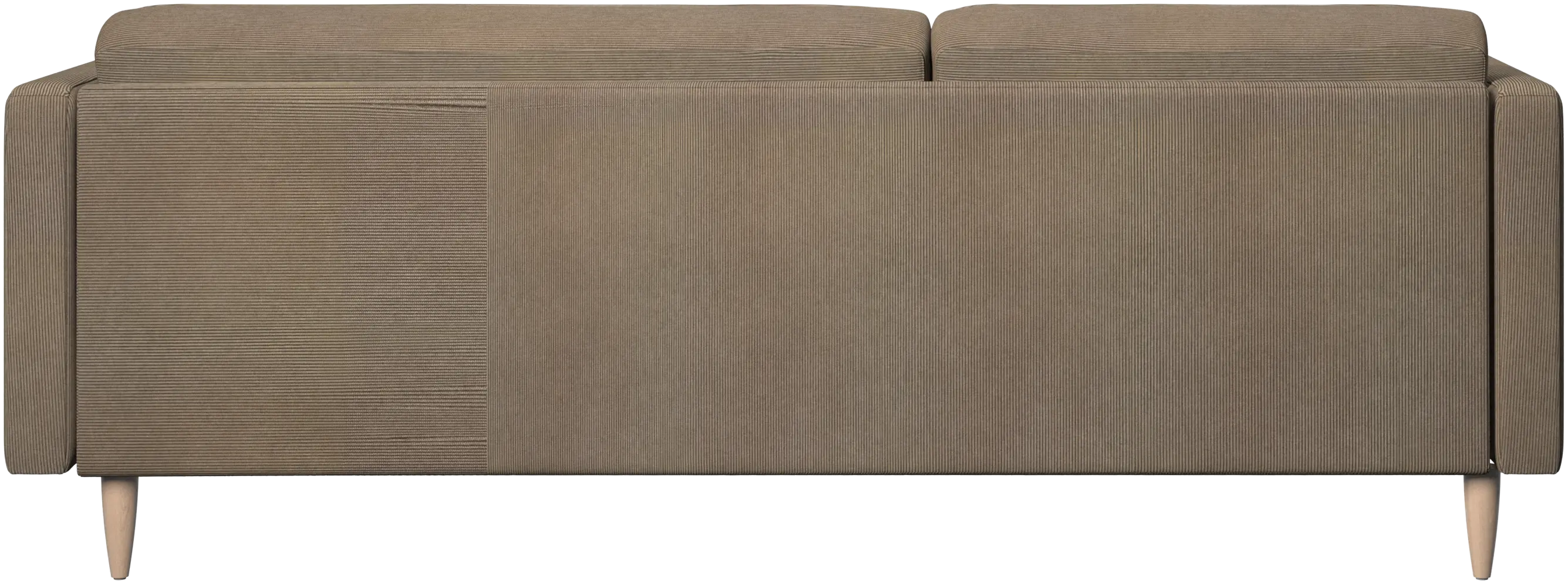 The seat cushions are attached with Velcro preventing the cushions from sliding as well as the ends flipping up when seated in the middle. A small, but important detail that ensures a neat look and allows for easy vacuum cleaning underneath.