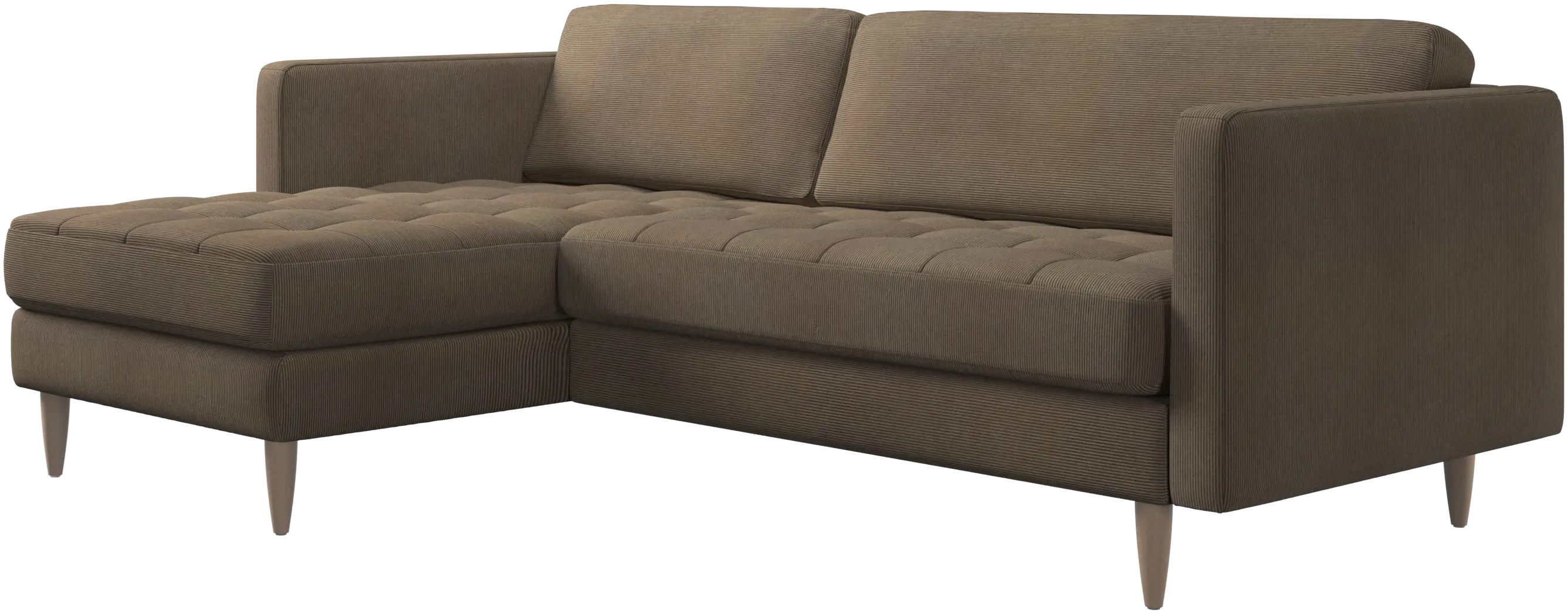 A light look and slim proportions make the Osaka sofa perfect for small homes, while a subtle feminine look and a touch of 60s design ensure that the Osaka sofa still packs a style punch. The beautiful tufted seats add visual softness and bring a classic look to your living room. The classic, straight armrests emphasise the clean lines and Scandinavian look. Put your feet up, stretch out or use it as an extra seat – you won’t be sorry for choosing this comfortable chaise longue sofa.
