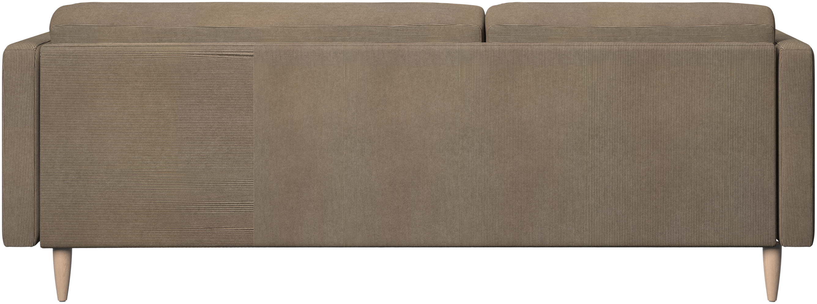 The seat cushions are attached with Velcro preventing the cushions from sliding as well as the ends flipping up when seated in the middle. A small, but important detail that ensures a neat look and allows for easy vacuum cleaning underneath.