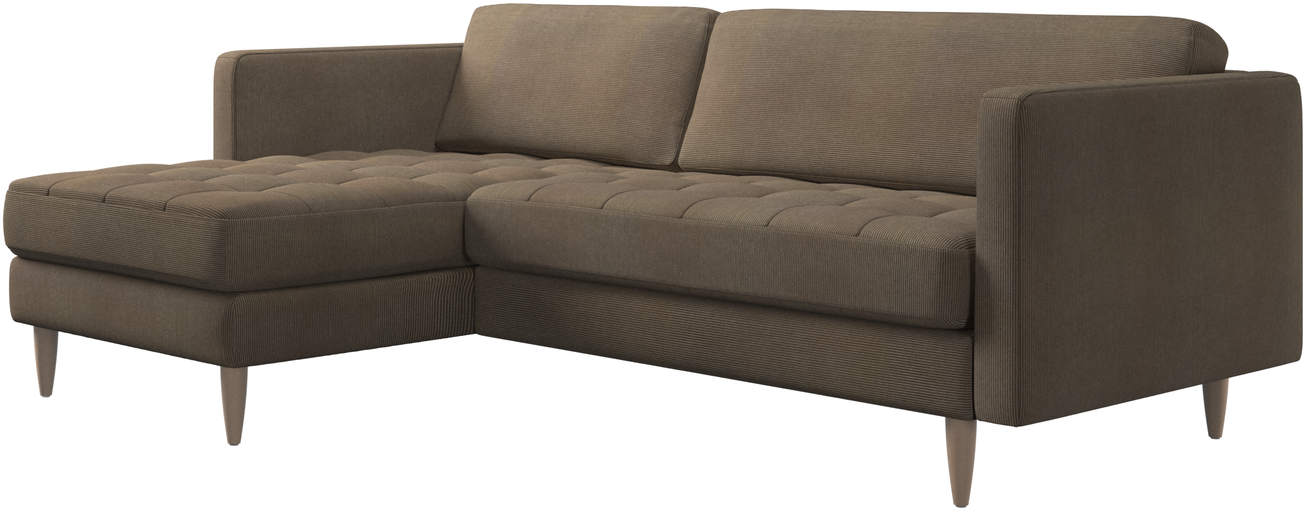 A light look and slim proportions make the Osaka sofa perfect for small homes, while a subtle feminine look and a touch of 60s design ensure that the Osaka sofa still packs a style punch. The beautiful tufted seats add visual softness and bring a classic look to your living room. The classic, straight armrests emphasise the clean lines and Scandinavian look. Put your feet up, stretch out or use it as an extra seat – you won’t be sorry for choosing this comfortable chaise longue sofa.