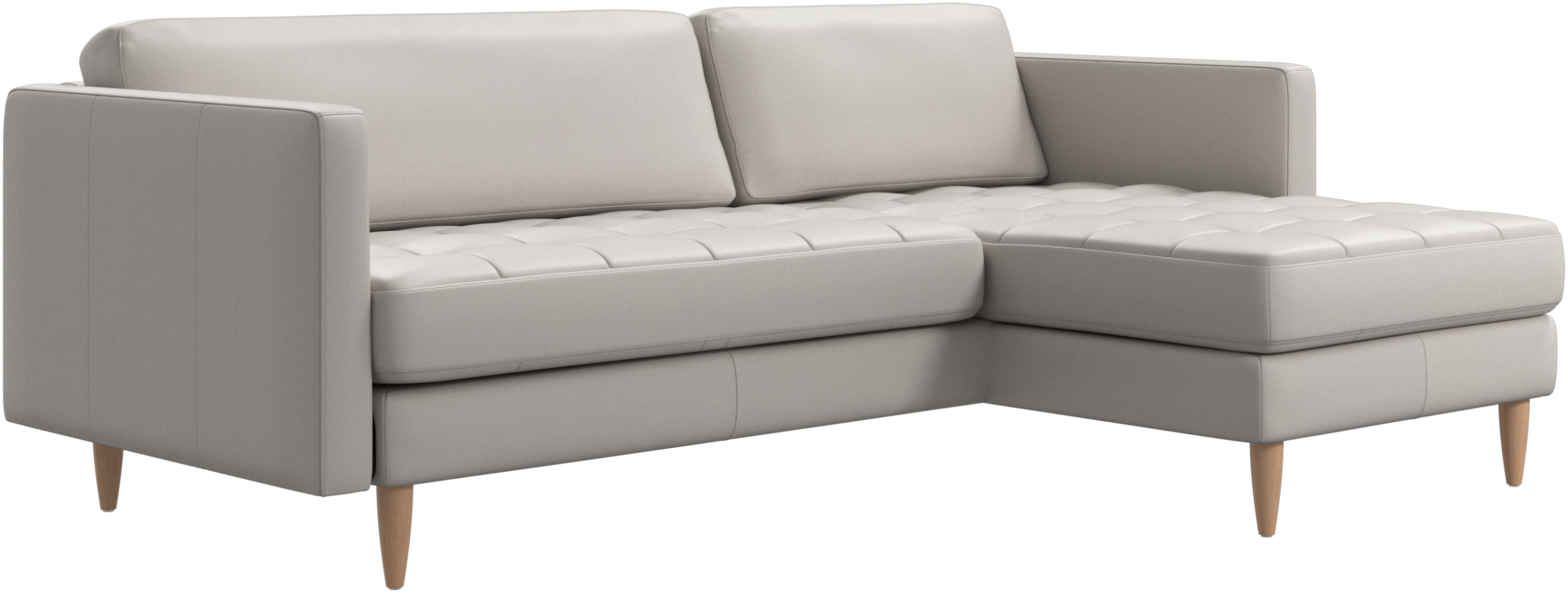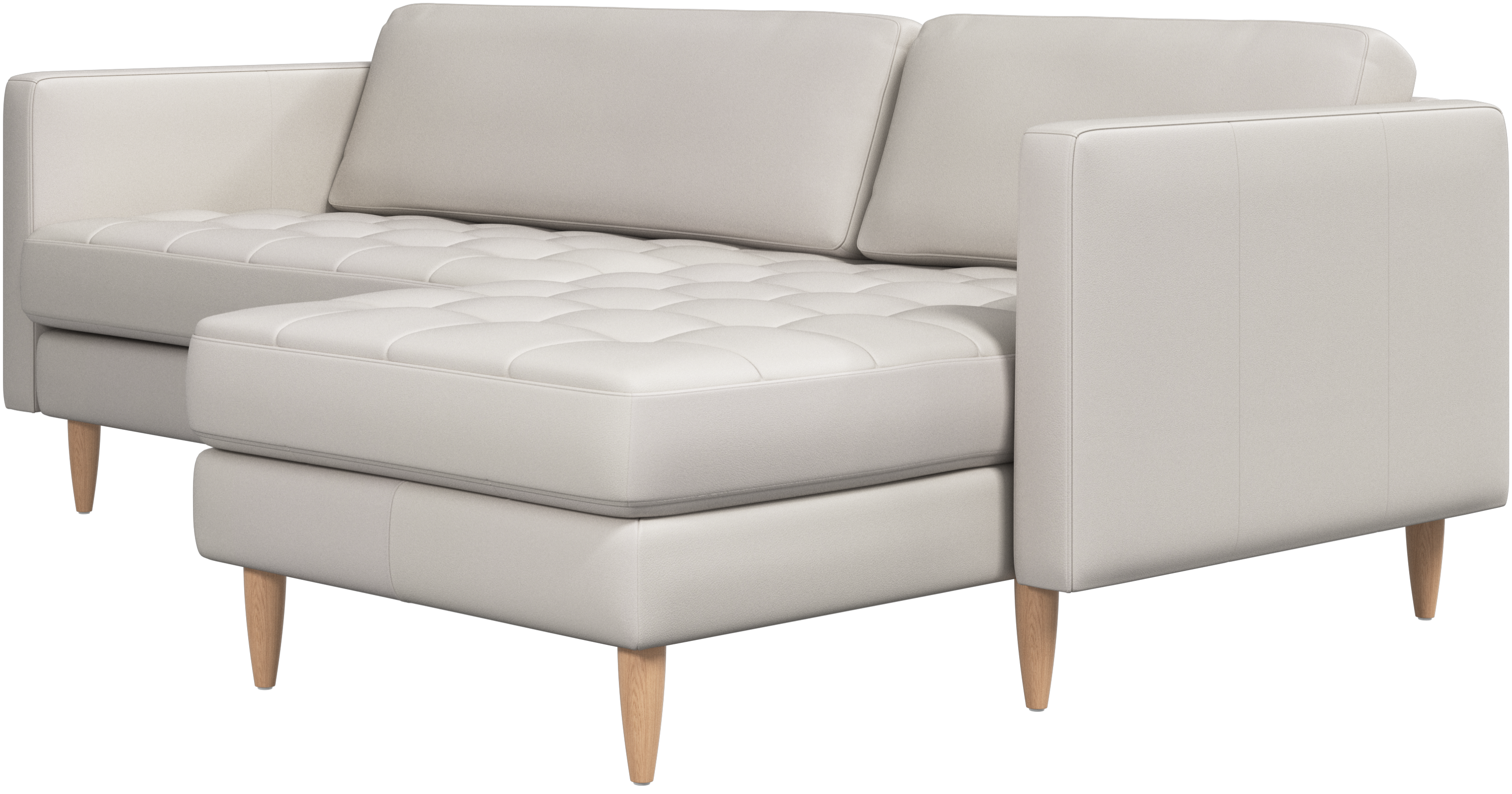A light look and slim proportions make the Osaka sofa perfect for small homes, while a subtle feminine look and a touch of 60s design ensure that the Osaka sofa still packs a style punch. The beautiful tufted seats add visual softness and bring a classic look to your living room. The classic, straight armrests emphasise the clean lines and Scandinavian look. Put your feet up, stretch out or use it as an extra seat – you won’t be sorry for choosing this comfortable chaise longue sofa.