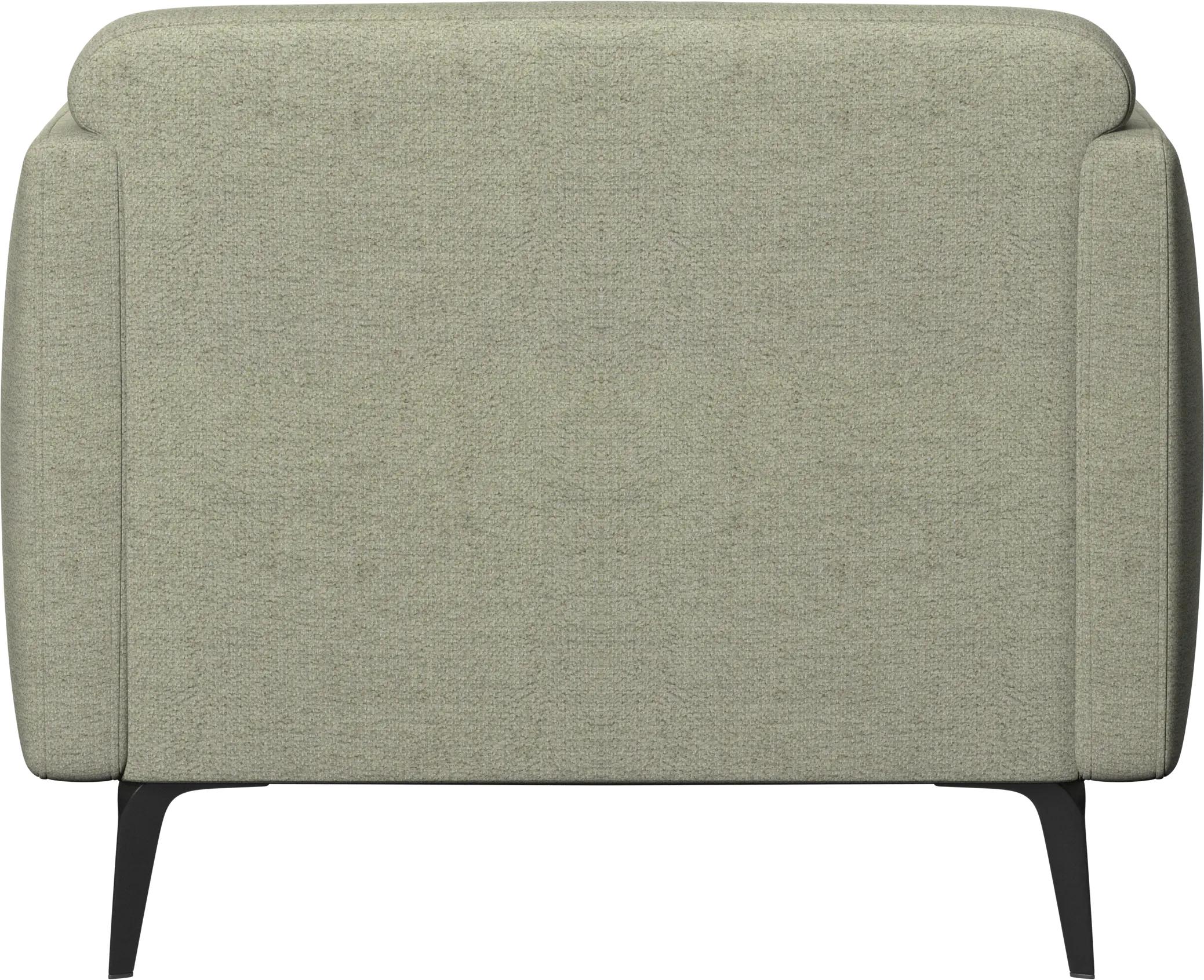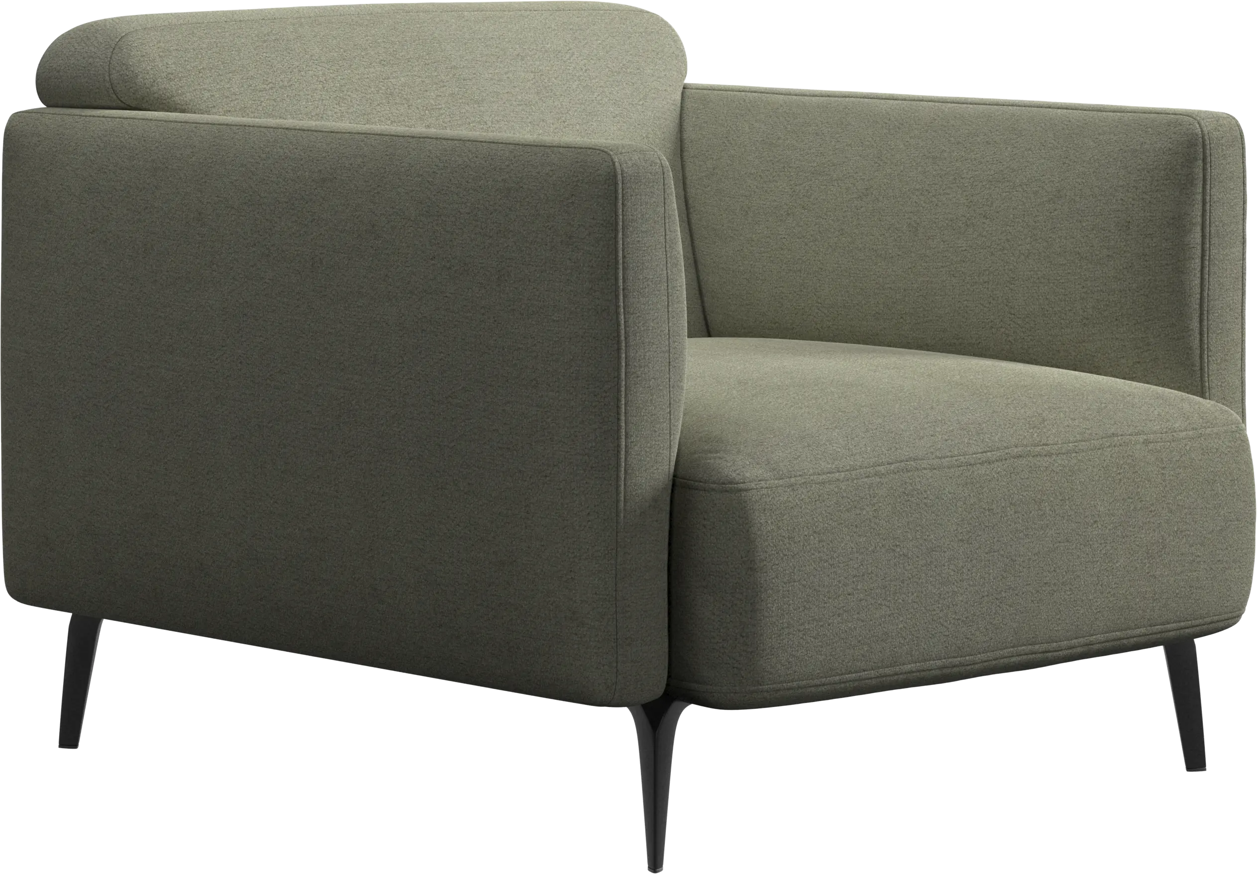 Soft upholstered armrests and rounded edges, gives a lounge feeling underlined by the low back.