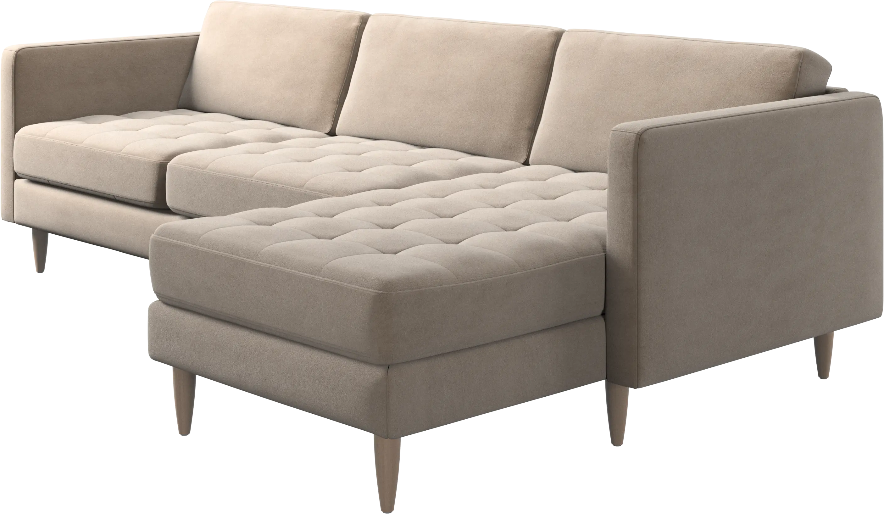 A light look and slim proportions make the Osaka sofa perfect for small homes, while a subtle feminine look and a touch of 60s design ensure that the Osaka sofa still packs a style punch. The beautiful tufted seats add visual softness and bring a classic look to your living room. The classic, straight armrests emphasise the clean lines and Scandinavian look. Put your feet up, stretch out or use it as an extra seat – you won’t be sorry for choosing this comfortable chaise longue sofa.