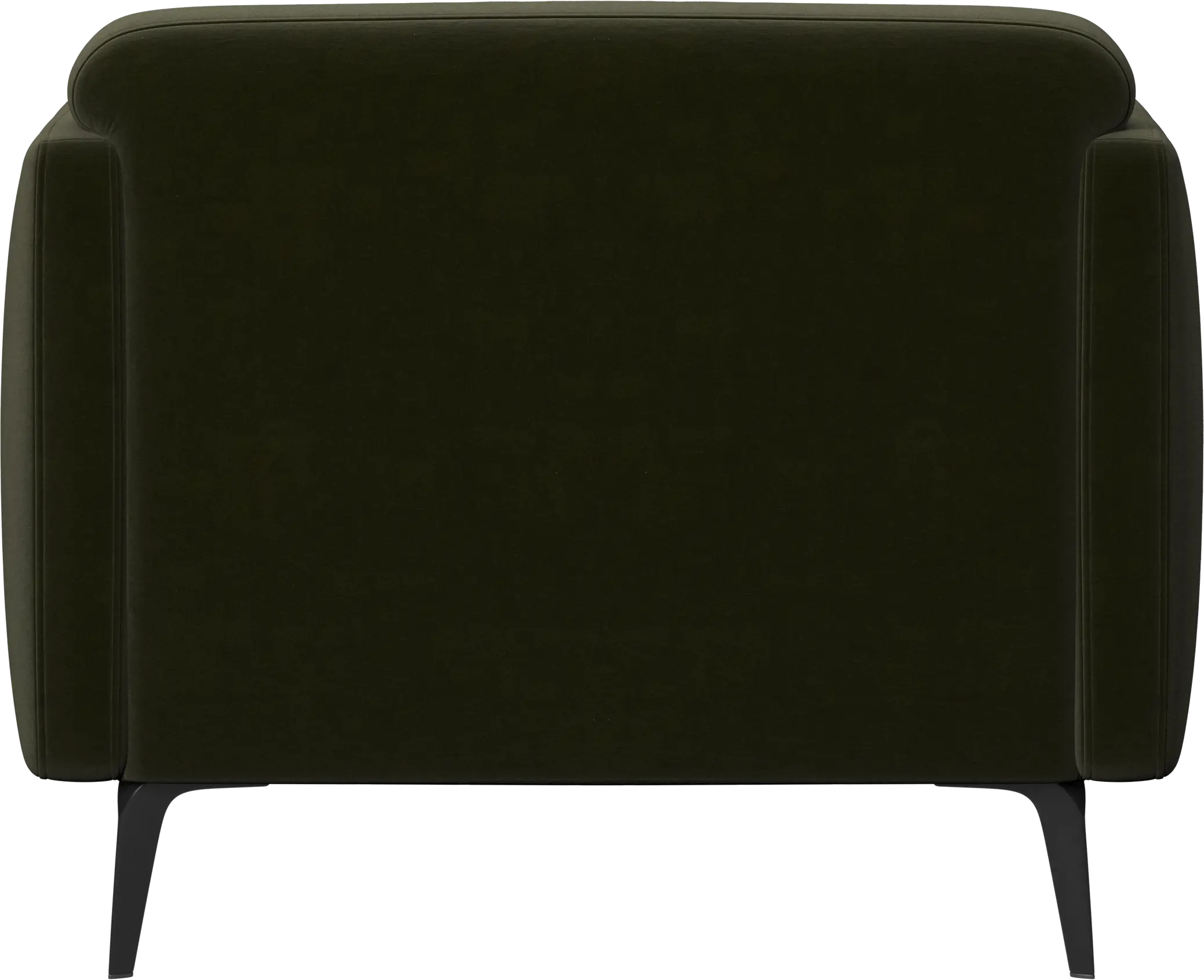 Soft upholstered armrests and rounded edges, gives a lounge feeling underlined by the low back.