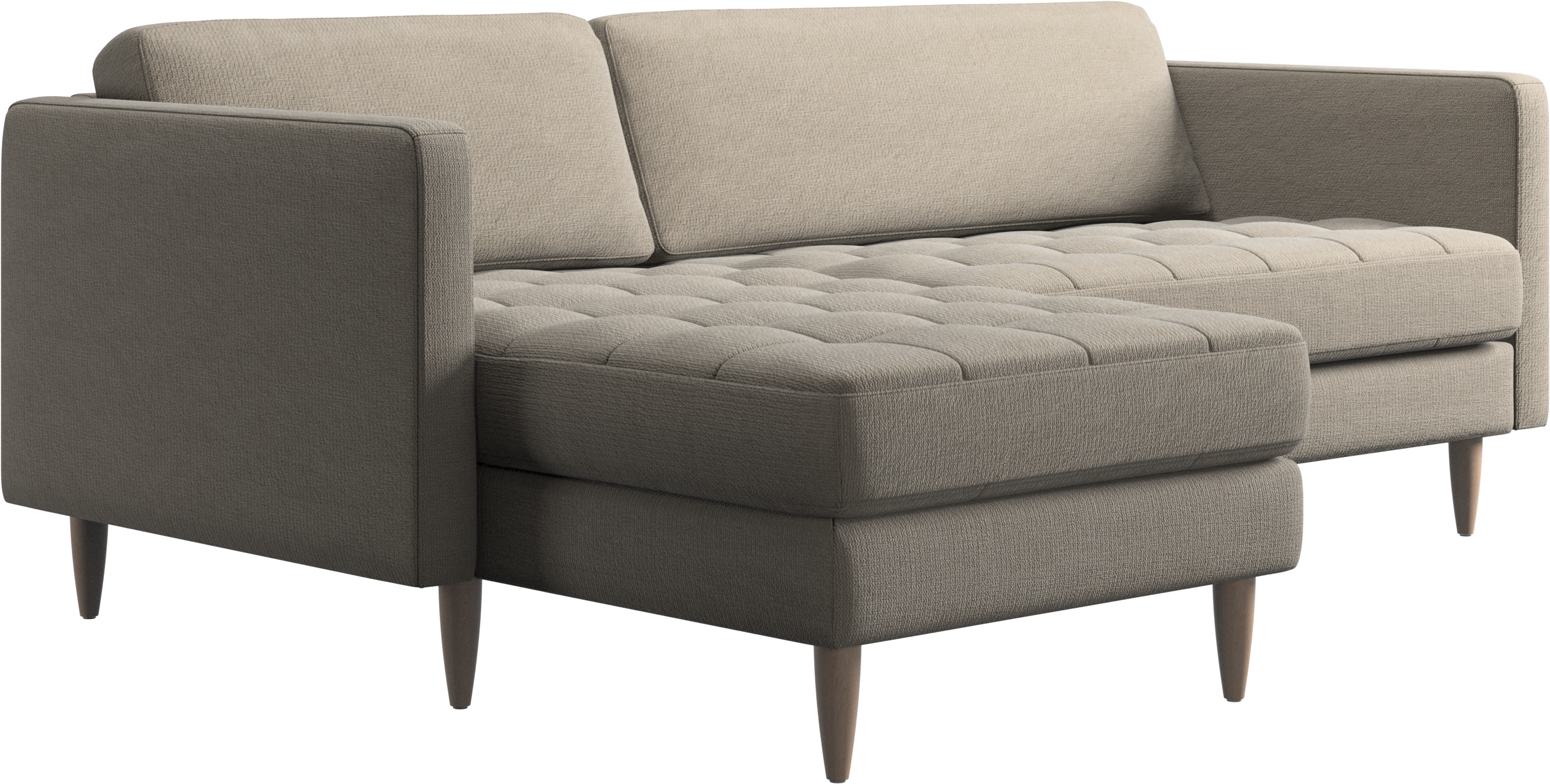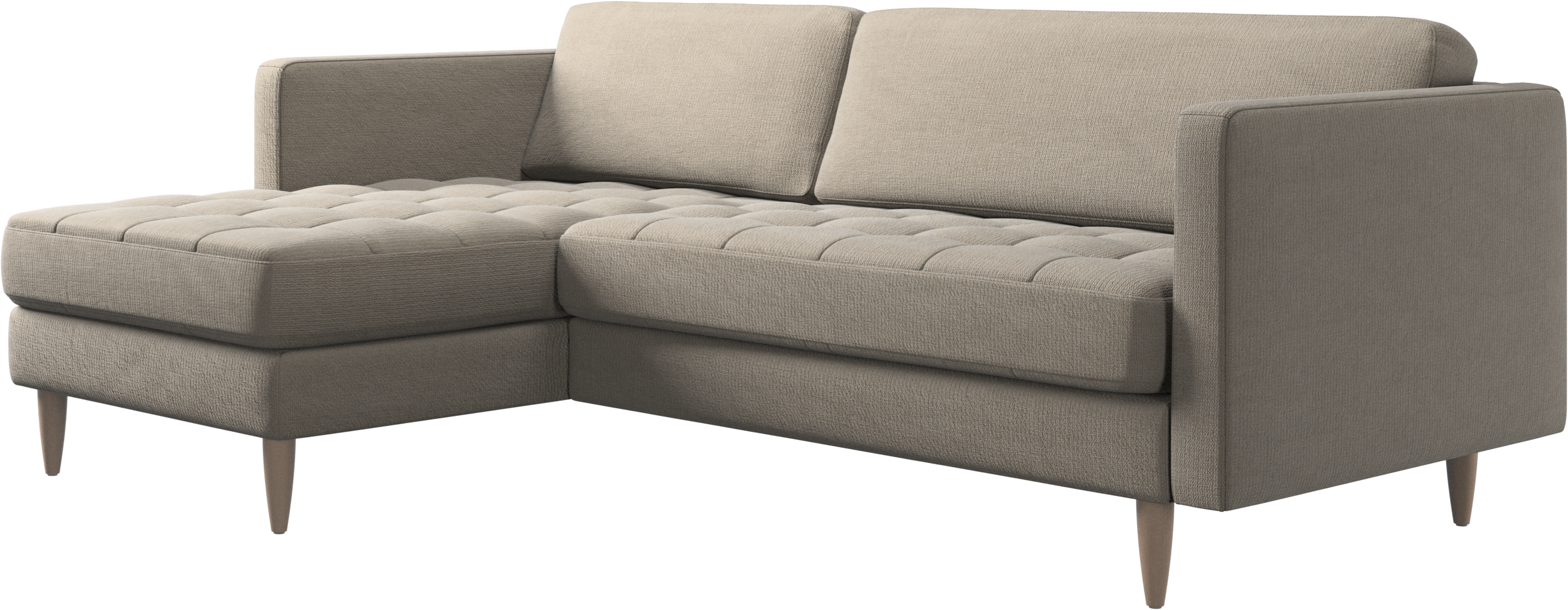 A light look and slim proportions make the Osaka sofa perfect for small homes, while a subtle feminine look and a touch of 60s design ensure that the Osaka sofa still packs a style punch. The beautiful tufted seats add visual softness and bring a classic look to your living room. The classic, straight armrests emphasise the clean lines and Scandinavian look. Put your feet up, stretch out or use it as an extra seat – you won’t be sorry for choosing this comfortable chaise longue sofa.