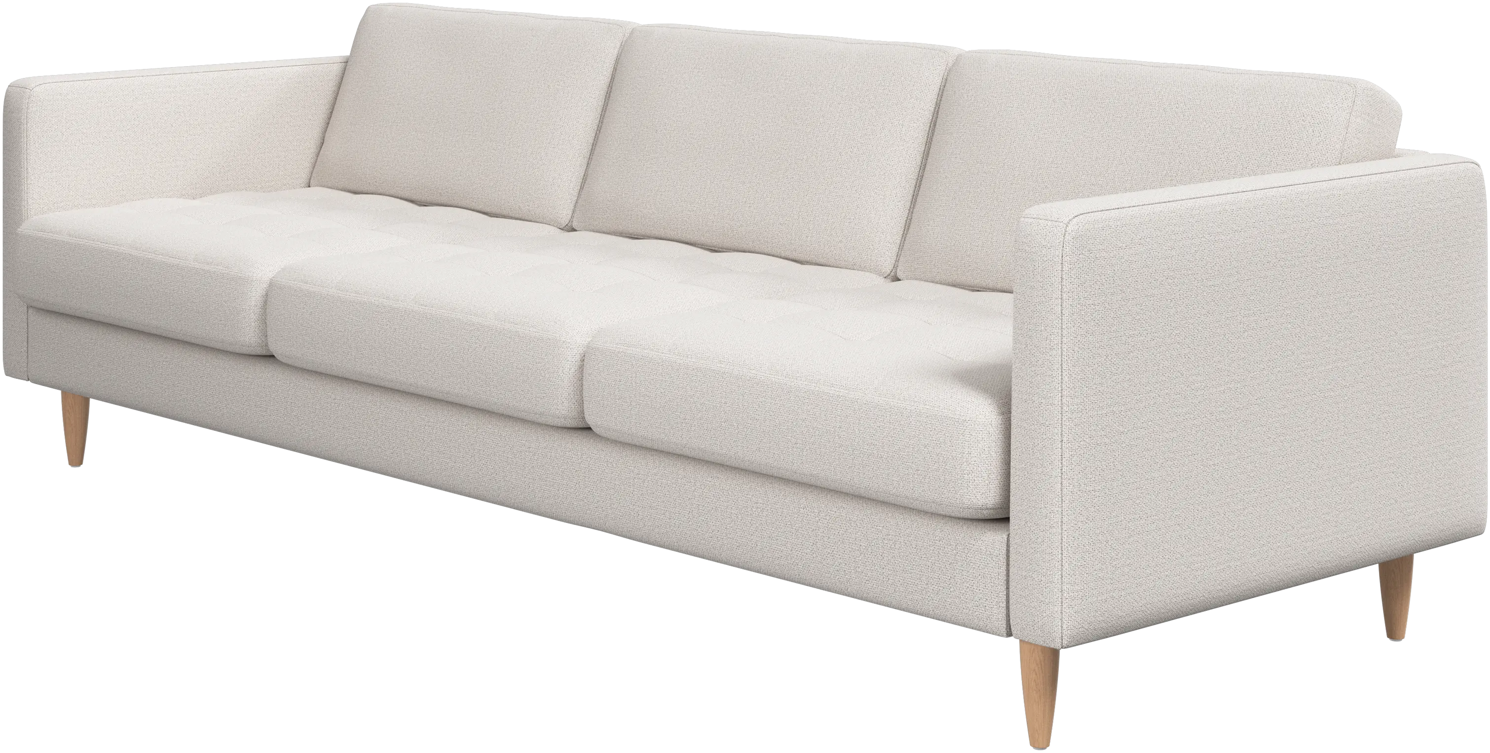 A light look and slim proportions make the Osaka sofa perfect for small homes, while a subtle feminine look and a touch of 60s design ensure that the Osaka sofa still packs a style punch. The beautiful tufted seats add visual softness and bring a classic look to your living room. The classic, straight armrests emphasise the clean lines and Scandinavian look. Cosy up with your family or claim the sofa all to yourself with this roomy 3 seater sofa.
