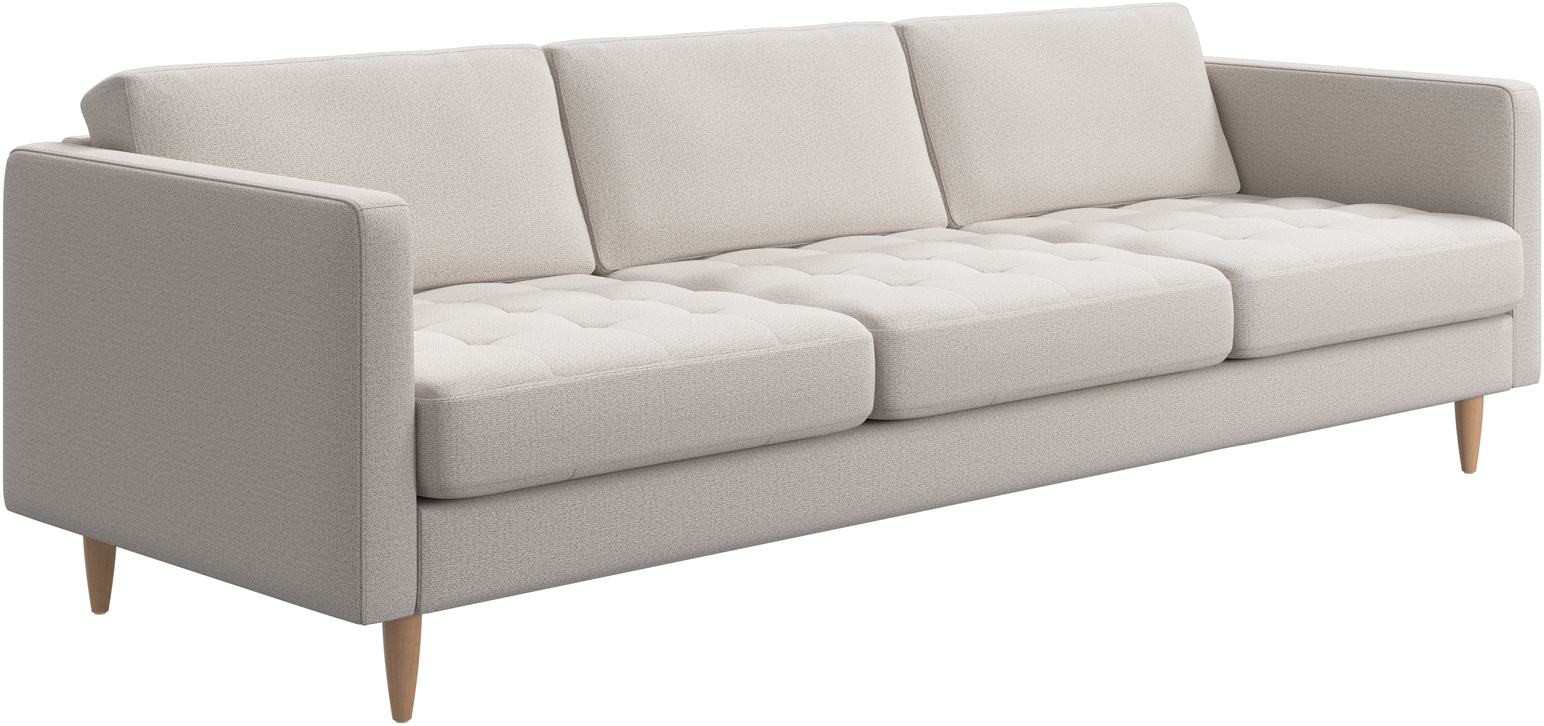 A light look and slim proportions make the Osaka sofa perfect for small homes, while a subtle feminine look and a touch of 60s design ensure that the Osaka sofa still packs a style punch. The beautiful tufted seats add visual softness and bring a classic look to your living room. The classic, straight armrests emphasise the clean lines and Scandinavian look. Cosy up with your family or claim the sofa all to yourself with this roomy 3 seater sofa.
