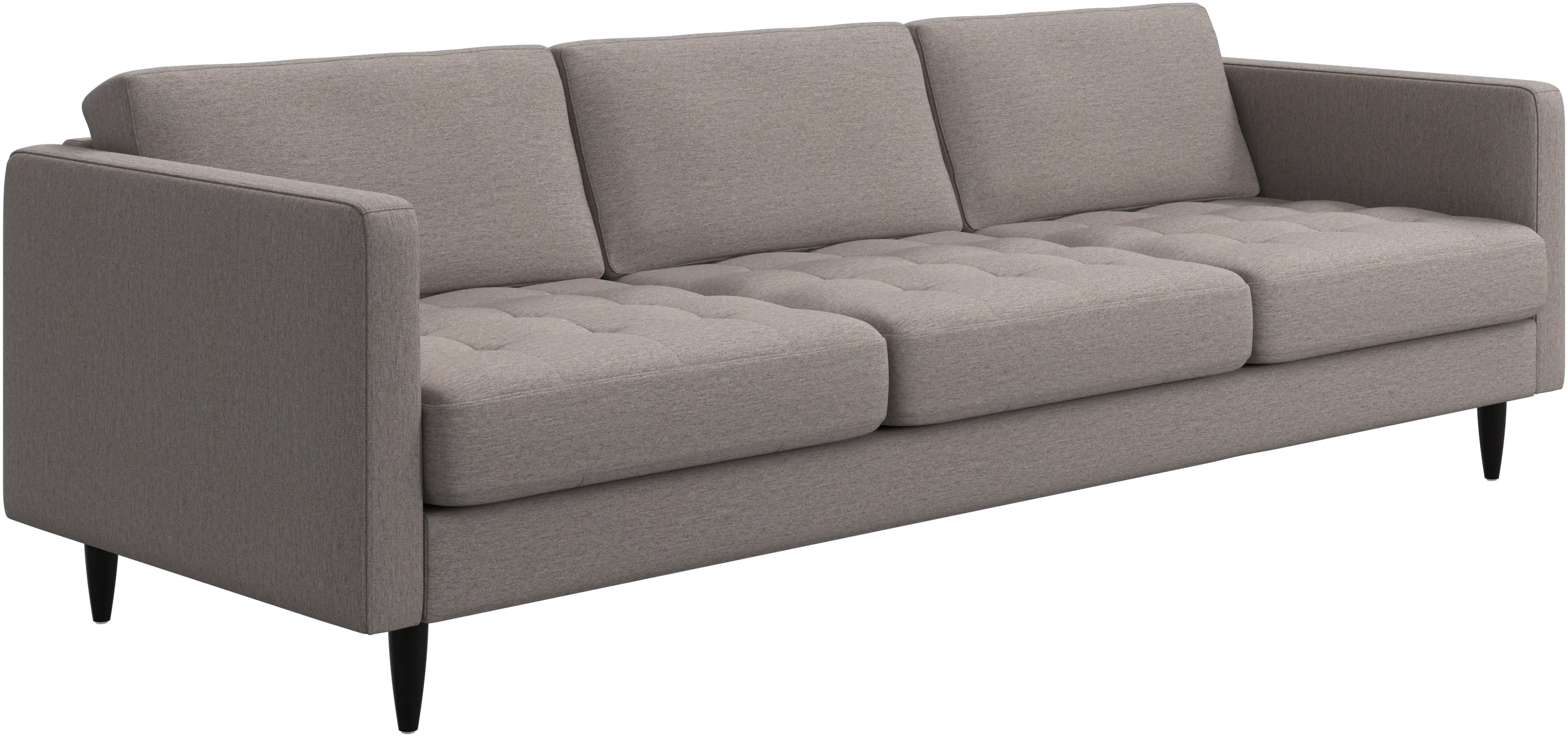 A light look and slim proportions make the Osaka sofa perfect for small homes, while a subtle feminine look and a touch of 60s design ensure that the Osaka sofa still packs a style punch. The beautiful tufted seats add visual softness and bring a classic look to your living room. The classic, straight armrests emphasise the clean lines and Scandinavian look. Cosy up with your family or claim the sofa all to yourself with this roomy 3 seater sofa.