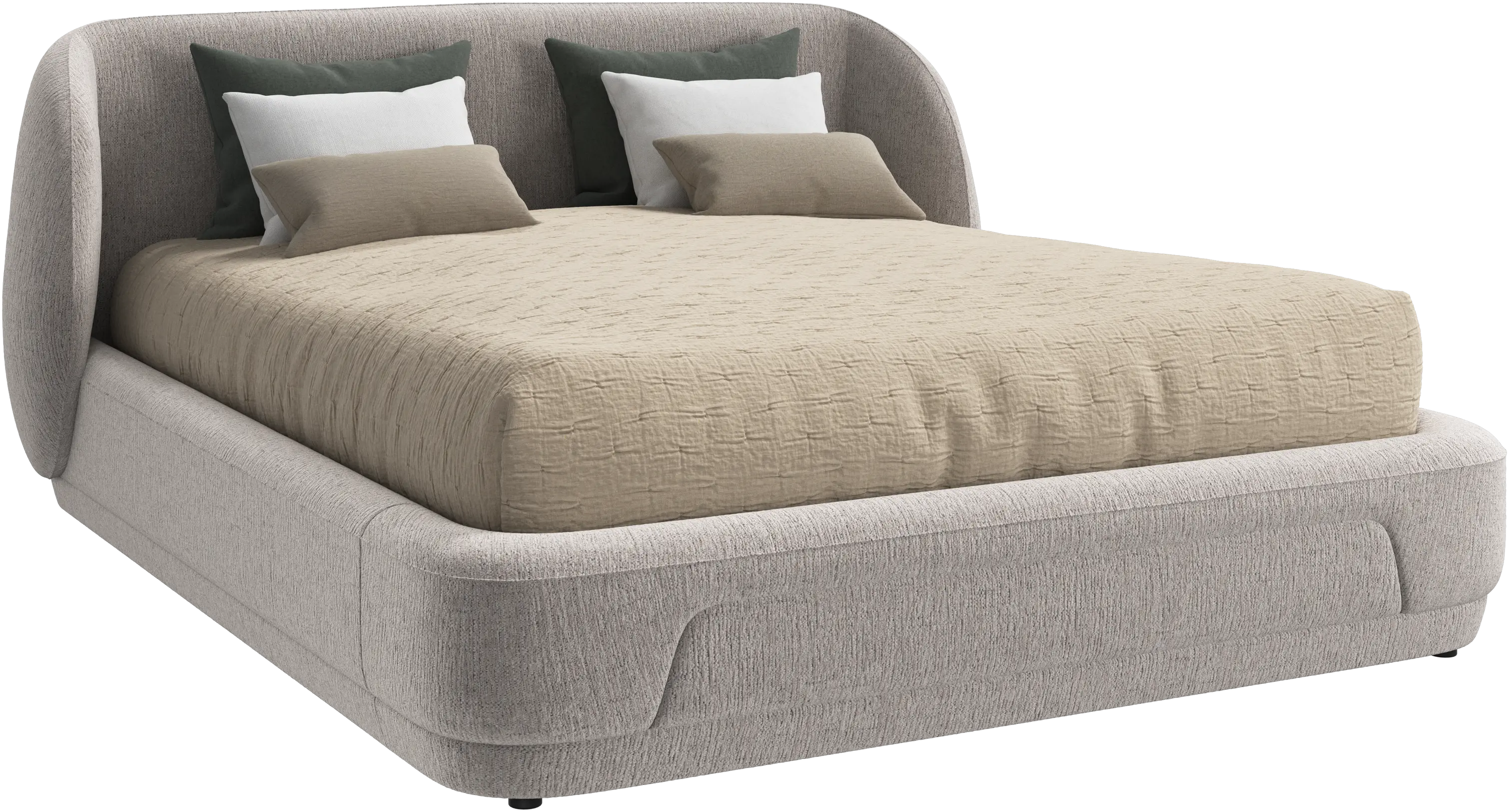 The Bolzano bed blends sculptural form with refined details to create a statement of calm and comfort.