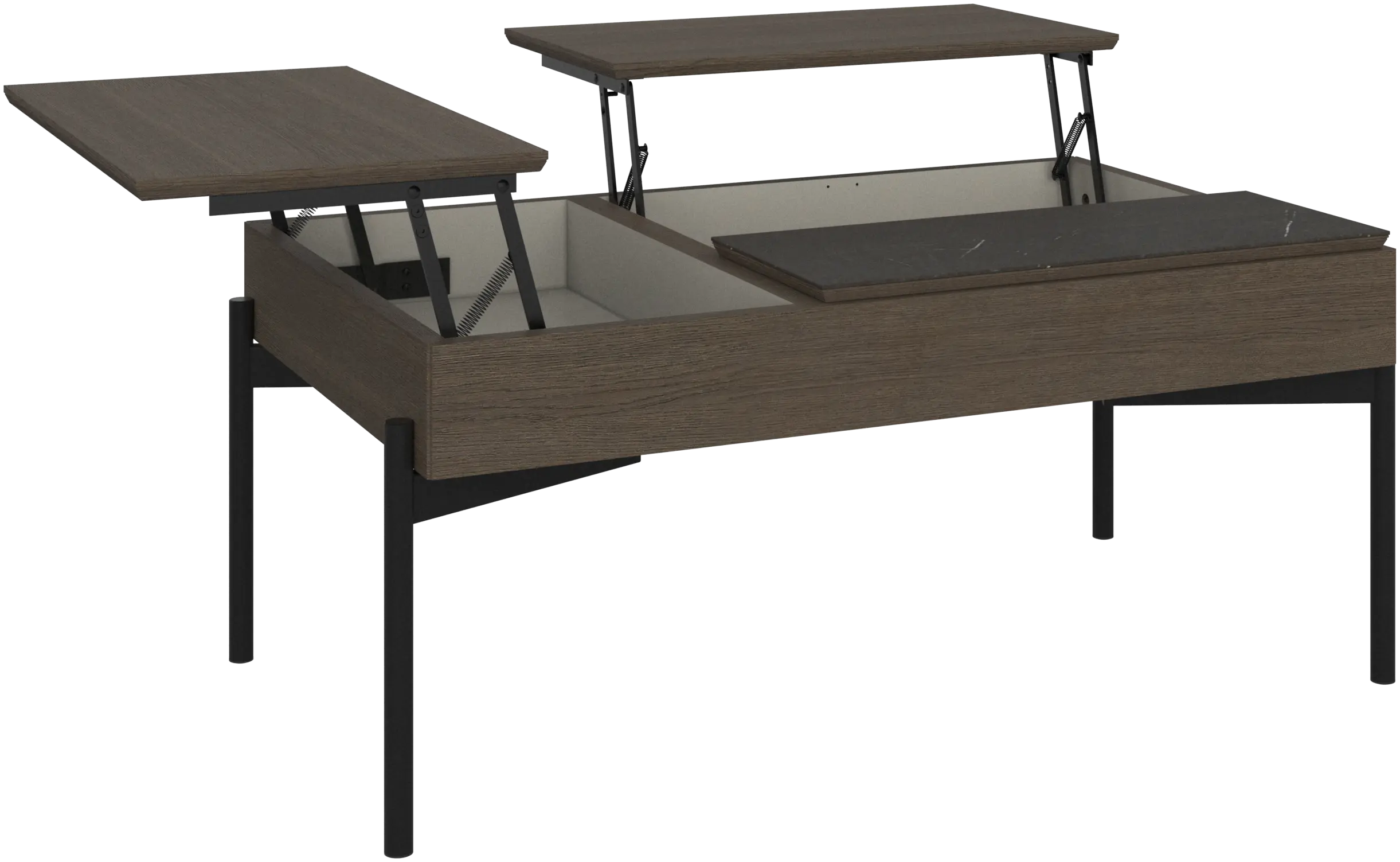 This modern coffee table is pure functionality wrapped in great design. Hide your remotes, your magazines, your chargers and cables in the heart of the Chiva coffee table, with its clever integrated storage. Or raise the slim table tops to create the perfect height for afternoon tea. Different leg designs offer different heights and functionalities allowing you to get the perfect coffee table for your space.