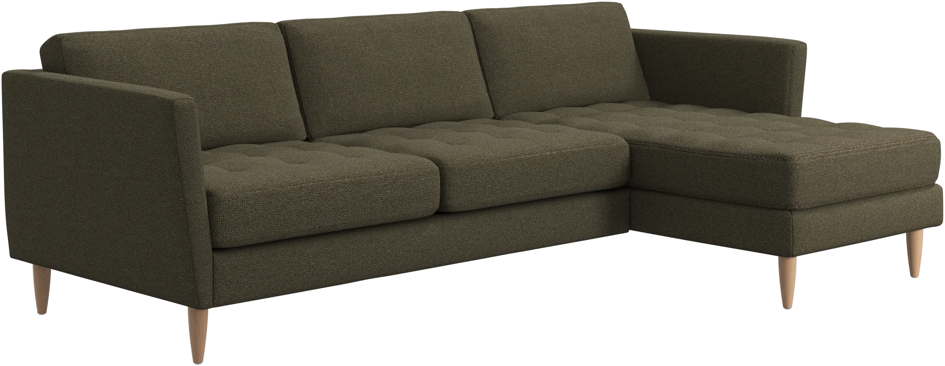 A light look and slim proportions make the Osaka sofa perfect for small homes, while a subtle feminine look and a touch of 60s design ensure that the Osaka sofa still packs a style punch. The beautiful tufted seats add visual softness and bring a classic look to your living room. Inclined armrests give the sofa a modern, unique look and open it up to the rest of the room. Put your feet up, stretch out or use it as an extra seat – you won’t be sorry for choosing this comfortable chaise longue sofa.