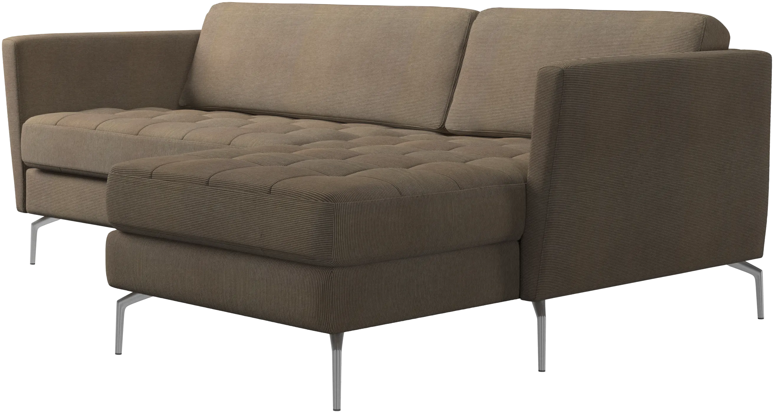 A light look and slim proportions make the Osaka sofa perfect for small homes, while a subtle feminine look and a touch of 60s design ensure that the Osaka sofa still packs a style punch. The beautiful tufted seats add visual softness and bring a classic look to your living room. Inclined armrests give the sofa a modern, unique look and open it up to the rest of the room. Put your feet up, stretch out or use it as an extra seat – you won’t be sorry for choosing this comfortable chaise longue sofa.