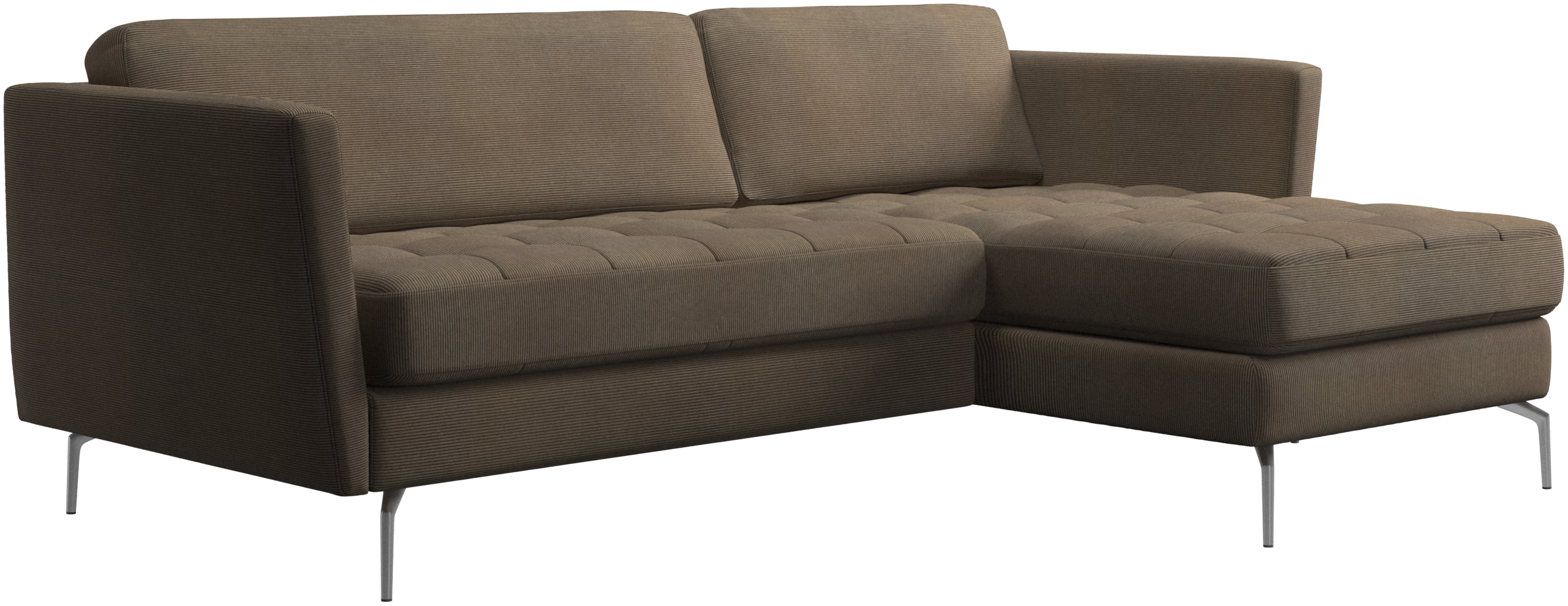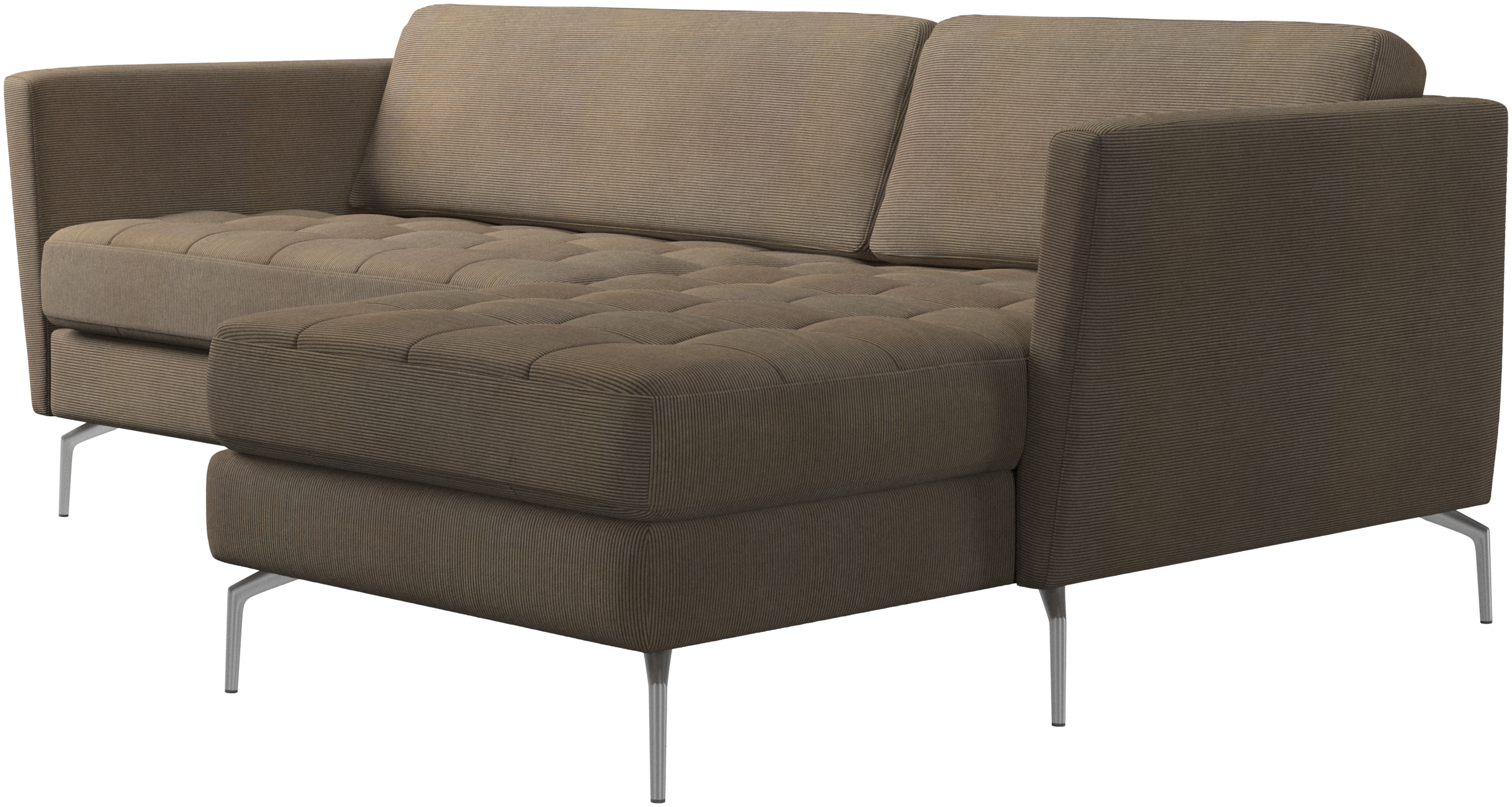 A light look and slim proportions make the Osaka sofa perfect for small homes, while a subtle feminine look and a touch of 60s design ensure that the Osaka sofa still packs a style punch. The beautiful tufted seats add visual softness and bring a classic look to your living room. Inclined armrests give the sofa a modern, unique look and open it up to the rest of the room. Put your feet up, stretch out or use it as an extra seat – you won’t be sorry for choosing this comfortable chaise longue sofa.