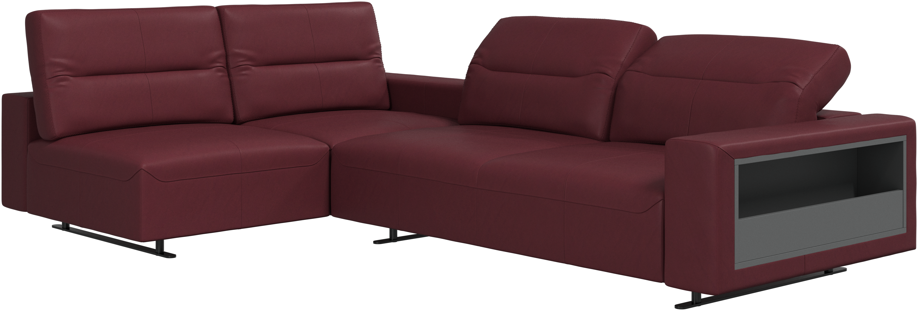 We know. It’s beautiful. But the modern Hampton sofa is much more than just good looks. A low base, a stunning loft look, adjustable backrests for comfort and visual impact – the Hampton sofa is the perfect personal retreat. The open end will create a dynamic, welcoming atmosphere - a true blessing for the integrated areas of open-plan living. And with clever built-in storage in the armrest, you will always have your living room essentials at hand.