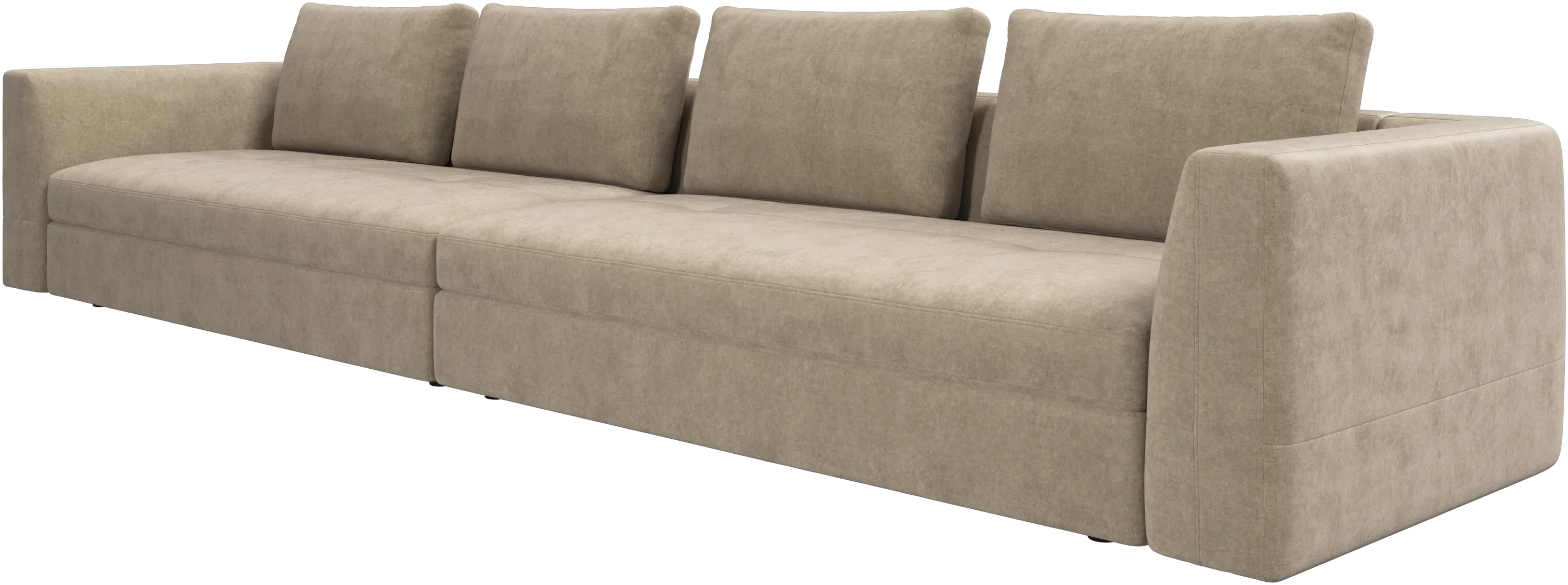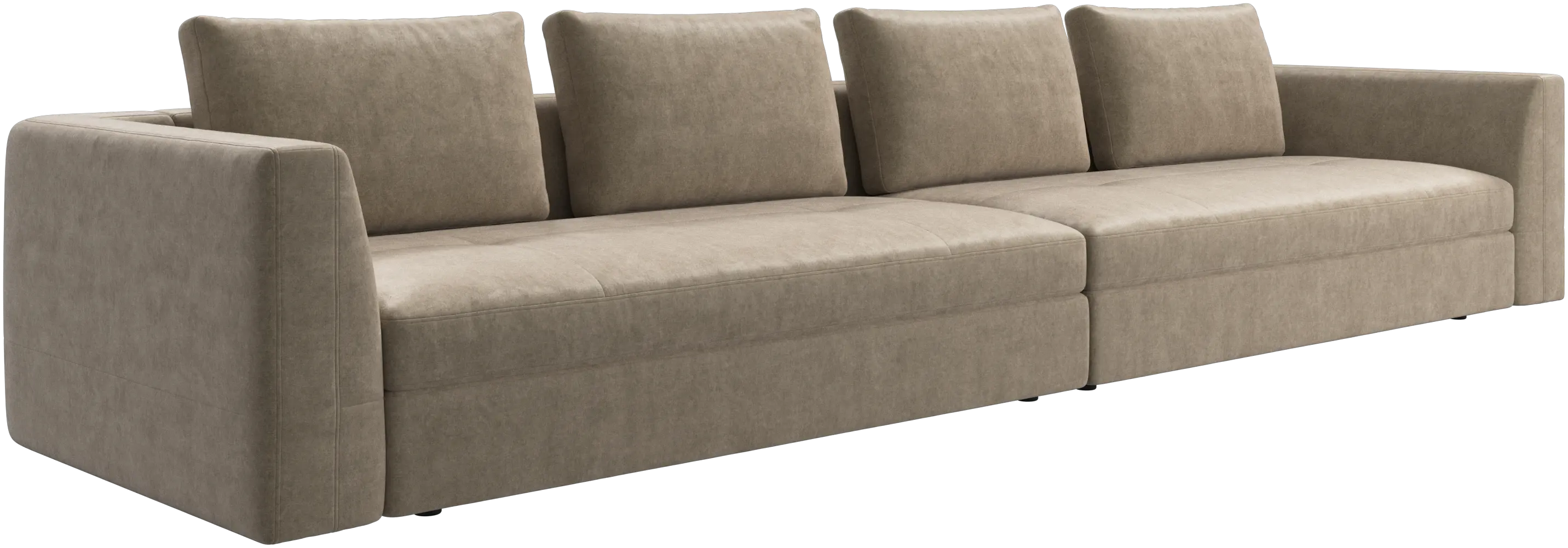 The Bergamo sofa is crafted with low, discrete legs that create a light, 'floating’ look.