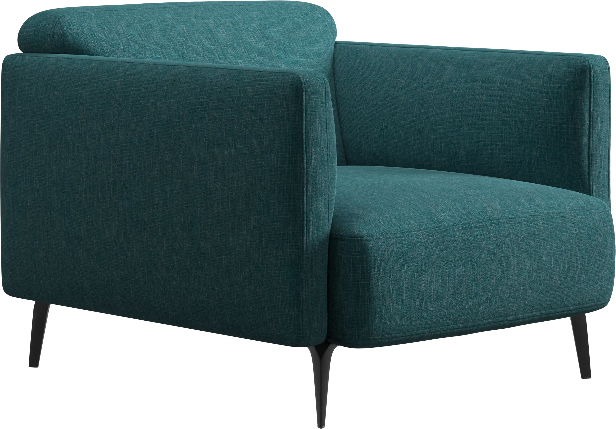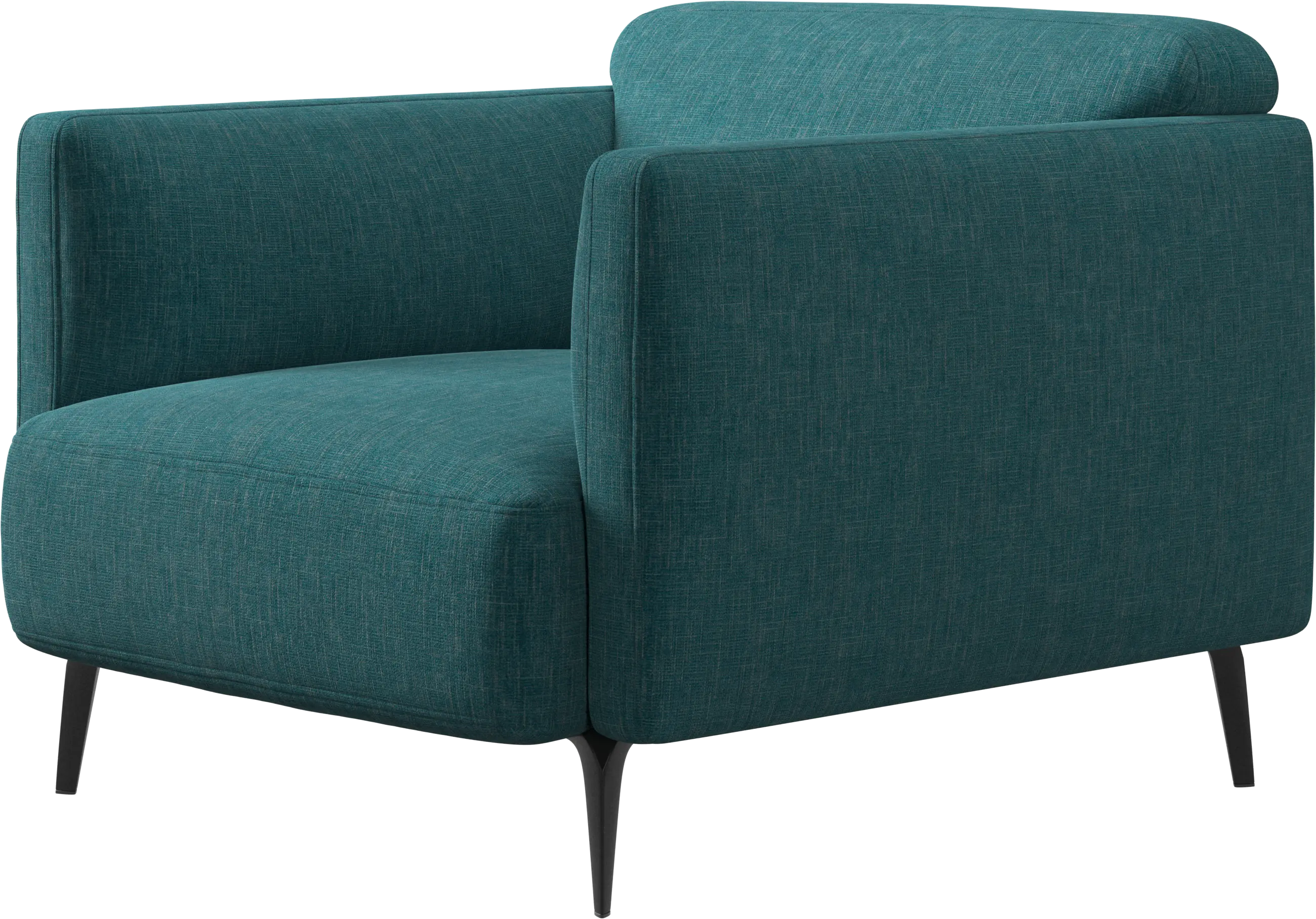 Soft upholstered armrests and rounded edges, gives a lounge feeling underlined by the low back.