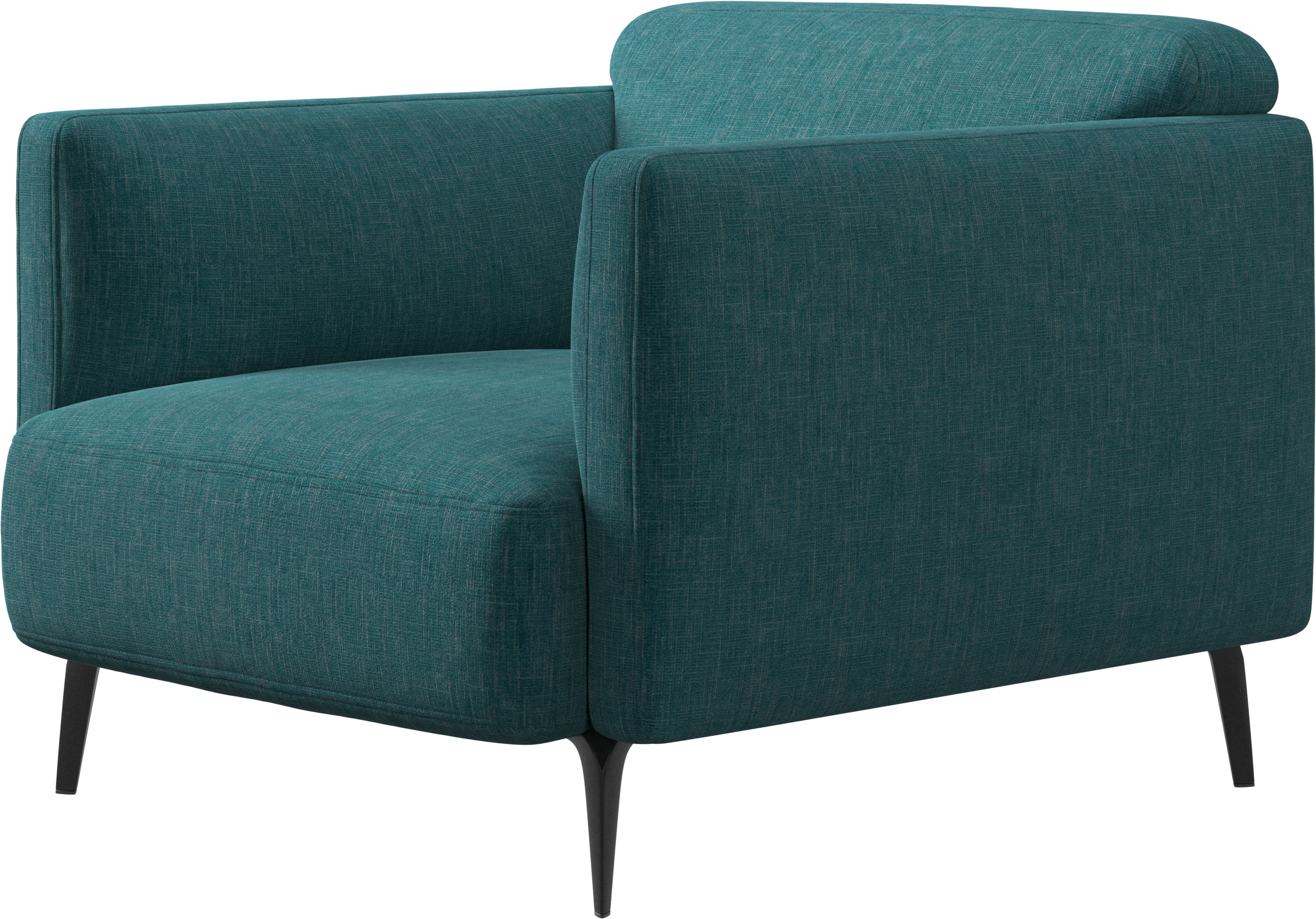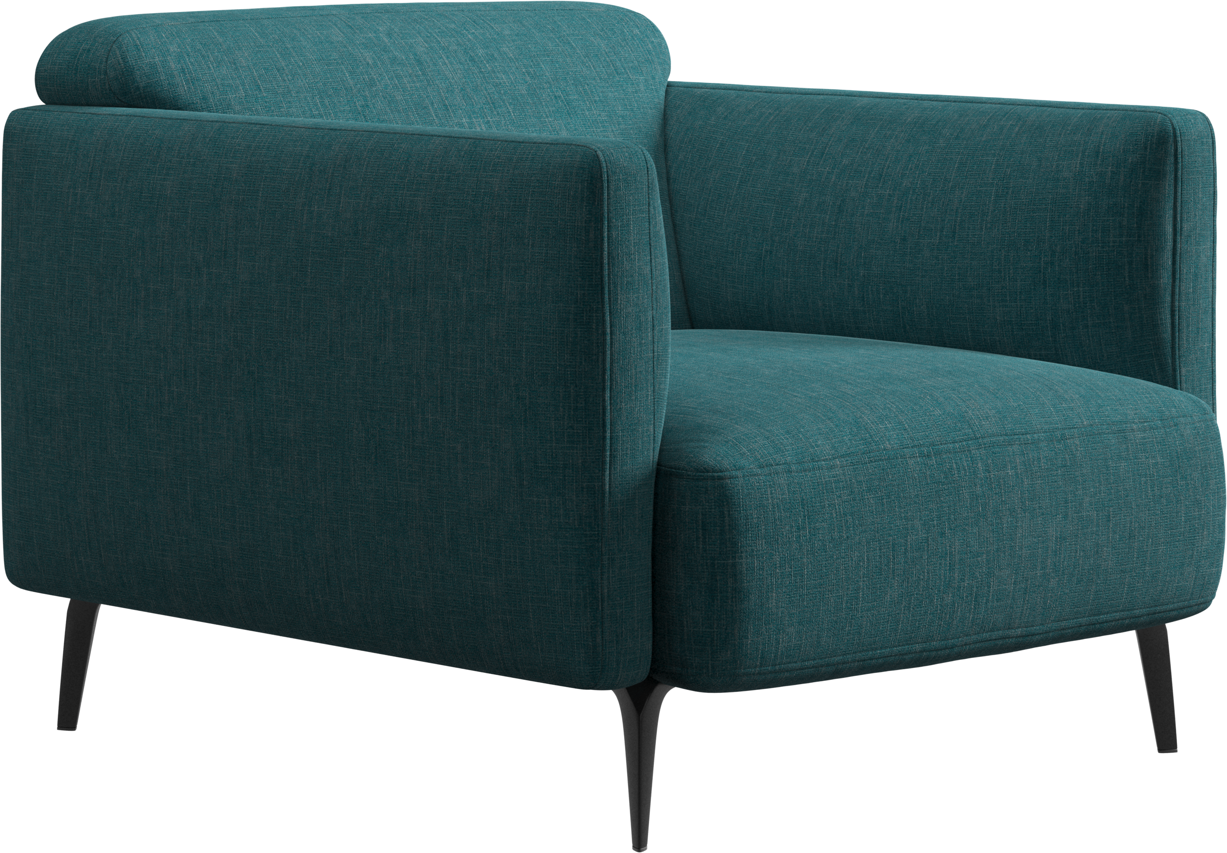 Soft upholstered armrests and rounded edges, gives a lounge feeling underlined by the low back.