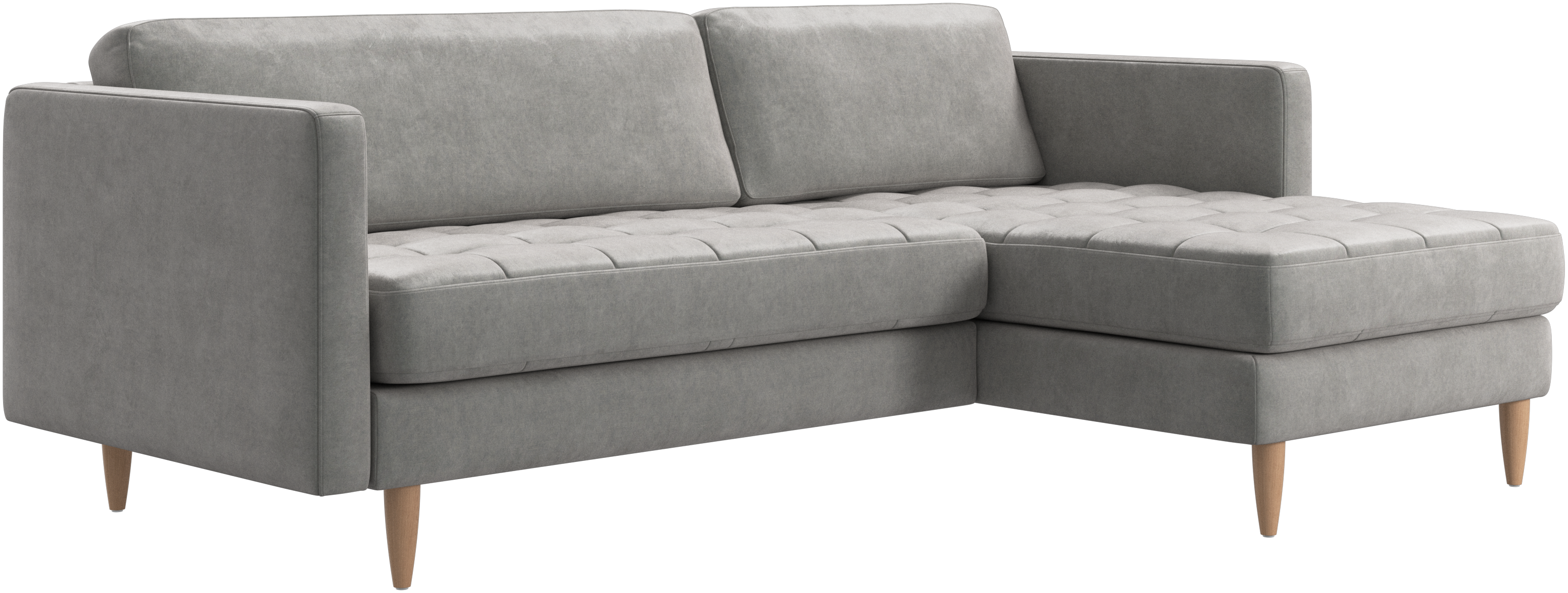 A light look and slim proportions make the Osaka sofa perfect for small homes, while a subtle feminine look and a touch of 60s design ensure that the Osaka sofa still packs a style punch. The beautiful tufted seats add visual softness and bring a classic look to your living room. The classic, straight armrests emphasise the clean lines and Scandinavian look. Put your feet up, stretch out or use it as an extra seat – you won’t be sorry for choosing this comfortable chaise longue sofa.