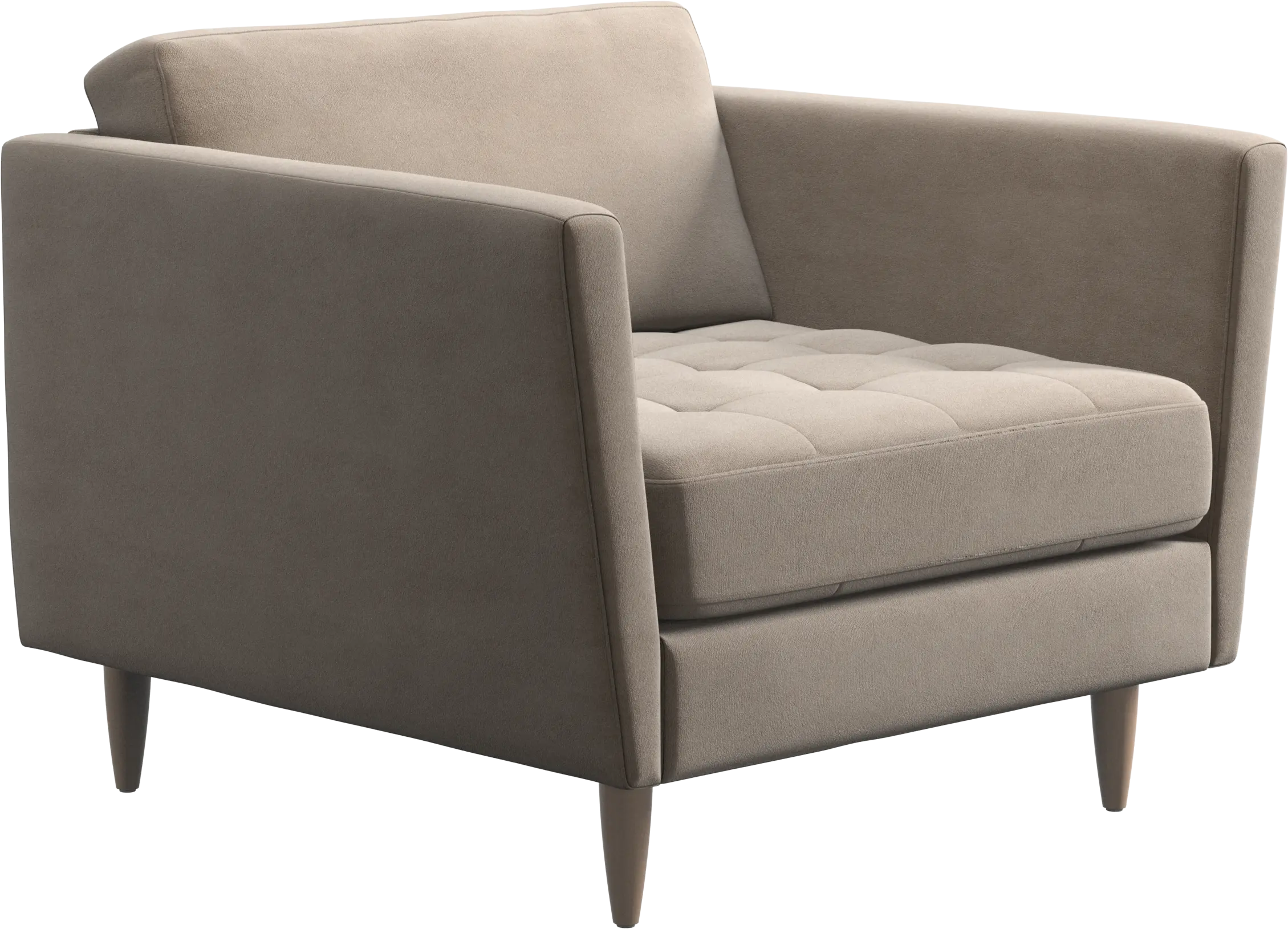 With a feminine touch and a nod to 60s design, the Osaka armchair is all about style. The light design and slim proportions make this armchair perfect for small homes or as part of a style coordinated living room set with the Osaka sofa. The beautiful tufted seat adds visual softness and brings a classic look to your living room. Inclined armrests give the armchair a modern, unique look and an open feel. Slim wooden legs complete the retro look.