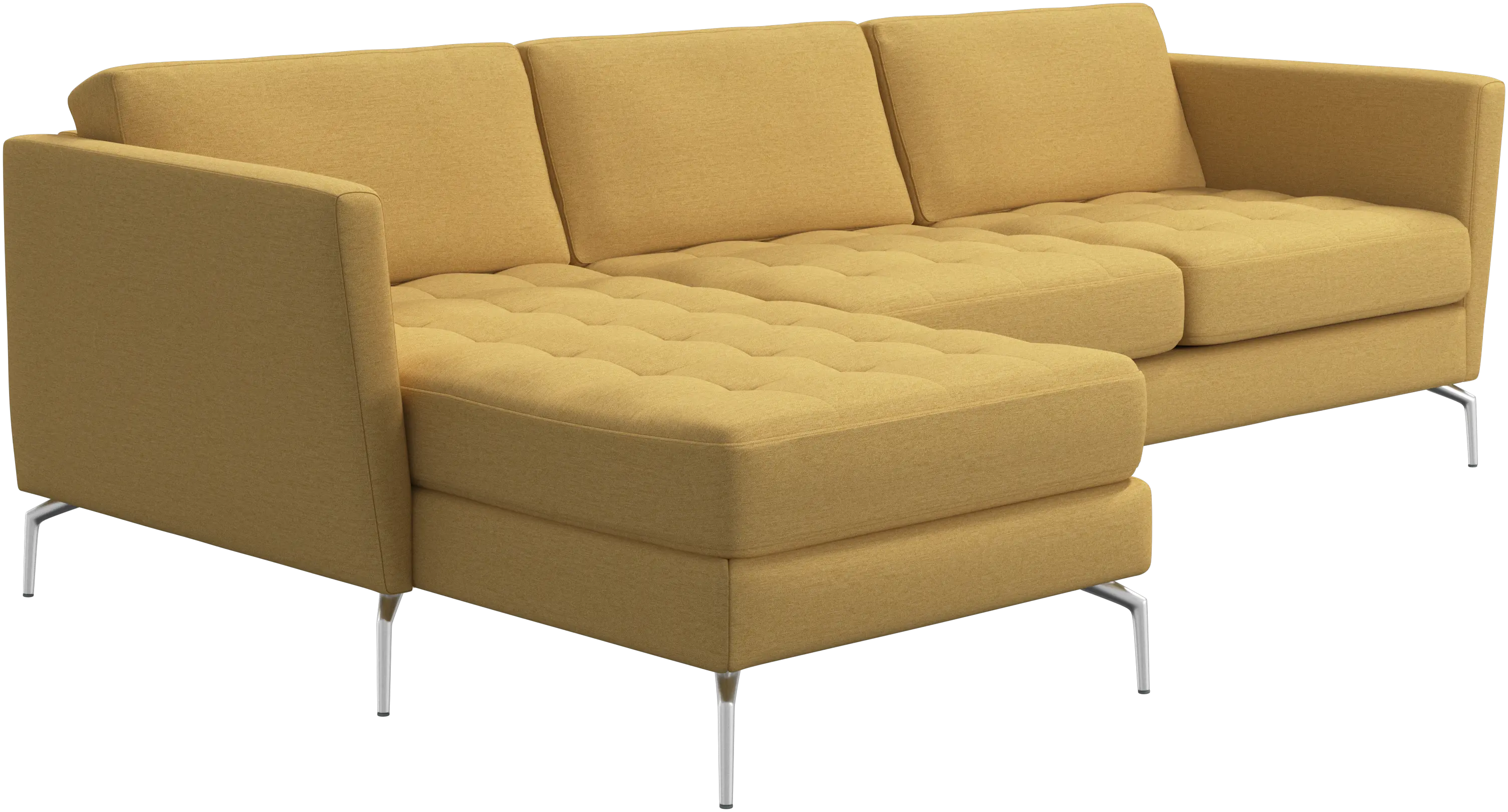 A light look and slim proportions make the Osaka sofa perfect for small homes, while a subtle feminine look and a touch of 60s design ensure that the Osaka sofa still packs a style punch. The beautiful tufted seats add visual softness and bring a classic look to your living room. Inclined armrests give the sofa a modern, unique look and open it up to the rest of the room. Put your feet up, stretch out or use it as an extra seat – you won’t be sorry for choosing this comfortable chaise longue sofa.