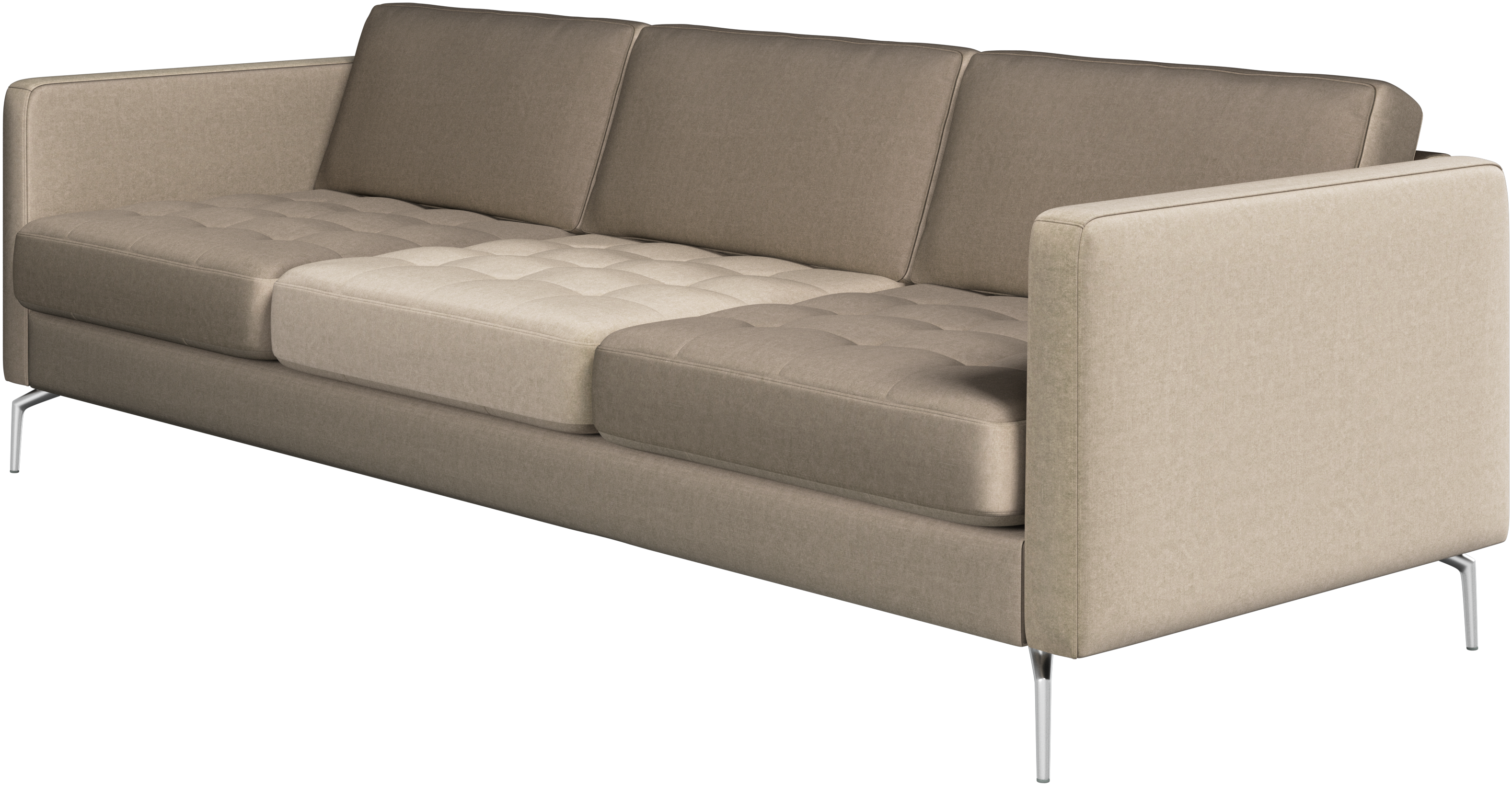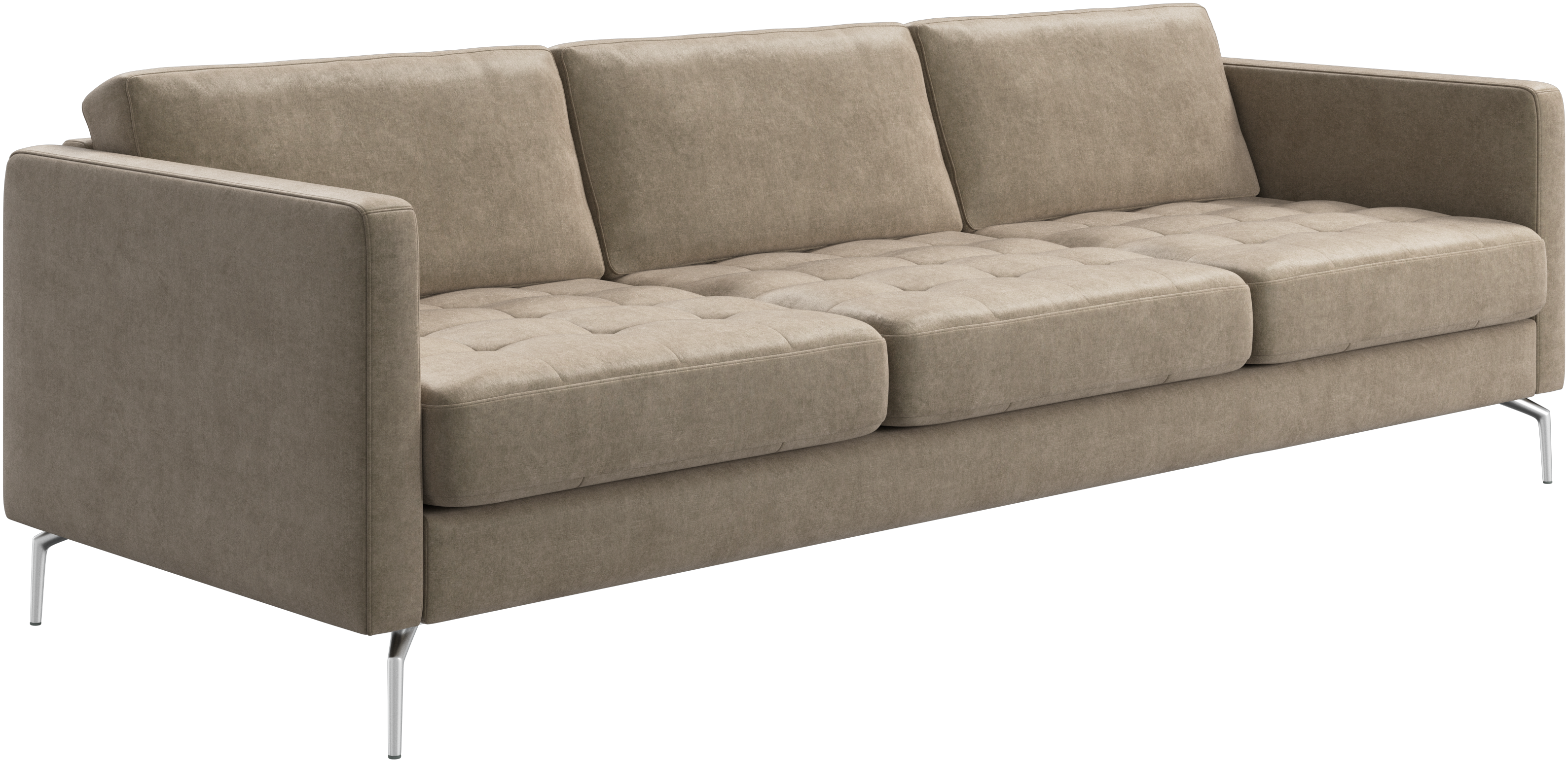 A light look and slim proportions make the Osaka sofa perfect for small homes, while a subtle feminine look and a touch of 60s design ensure that the Osaka sofa still packs a style punch. The beautiful tufted seats add visual softness and bring a classic look to your living room. The classic, straight armrests emphasise the clean lines and Scandinavian look. Cosy up with your family or claim the sofa all to yourself with this roomy 3 seater sofa.