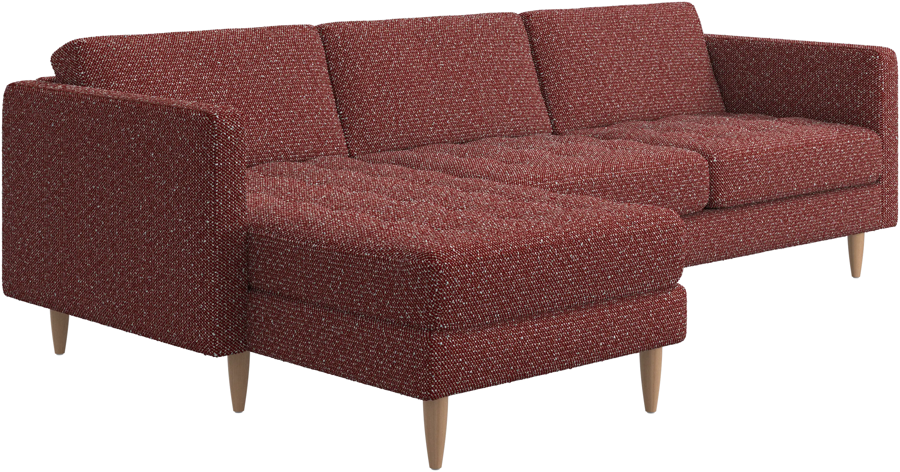 A light look and slim proportions make the Osaka sofa perfect for small homes, while a subtle feminine look and a touch of 60s design ensure that the Osaka sofa still packs a style punch. The beautiful tufted seats add visual softness and bring a classic look to your living room. The classic, straight armrests emphasise the clean lines and Scandinavian look. Put your feet up, stretch out or use it as an extra seat – you won’t be sorry for choosing this comfortable chaise longue sofa.