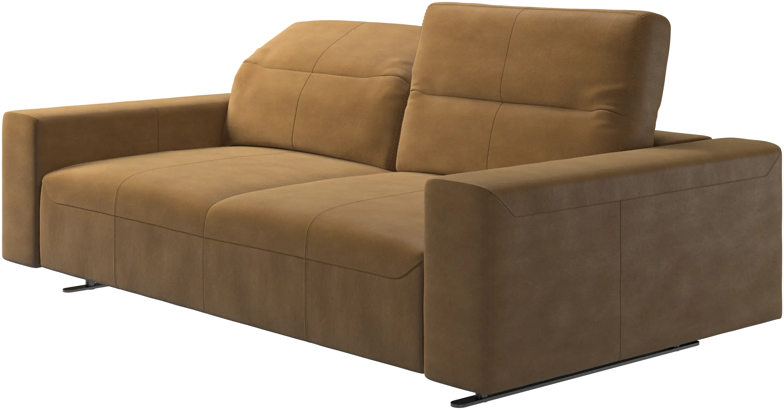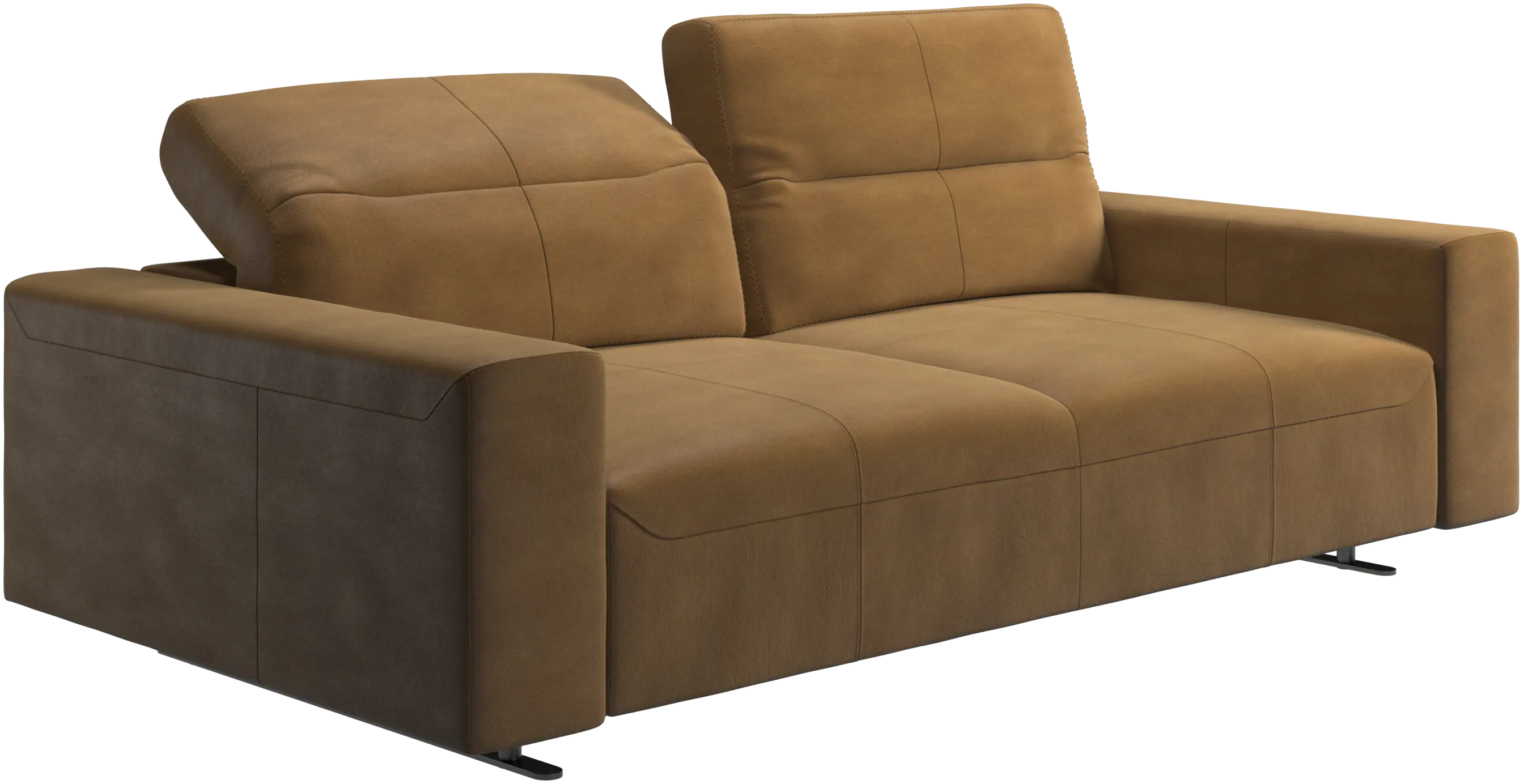 The total depth of the seat is 107 cm meaning wide enough to sleep on. To ensure optimal support despite this deep seating area, a lumbar cushion and a scatter cushion are available in coordinated fabrics and leathers.