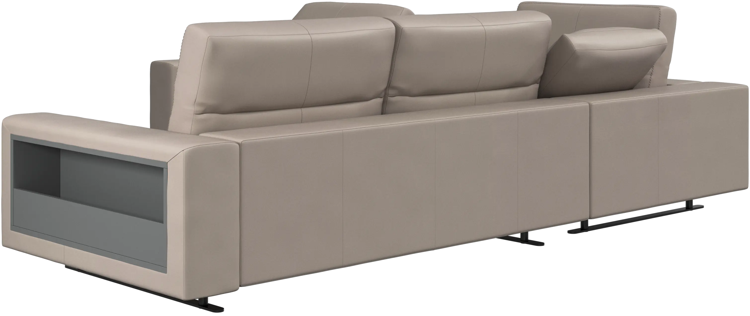 We know. It’s beautiful. But the modern Hampton sofa is much more than just good looks. A low base, a stunning loft look, adjustable backrests for comfort and visual impact – the Hampton sofa is the perfect personal retreat. With plenty of room for the entire family this corner sofa will be the hero of your living room. And with clever built-in storage in the armrest, you will always have your living room essentials at hand.