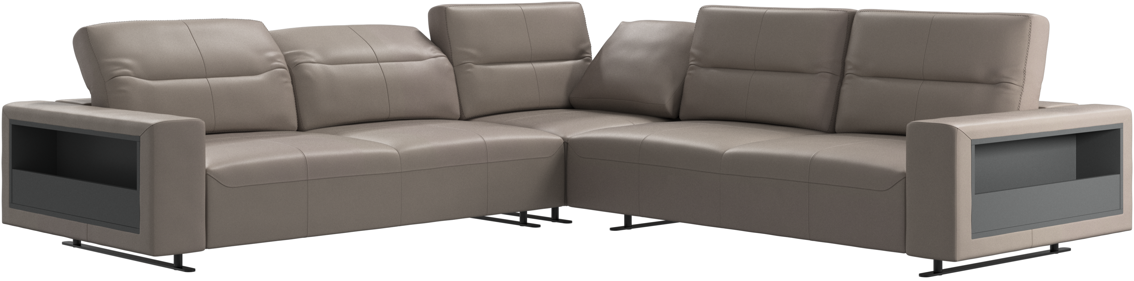 We know. It’s beautiful. But the modern Hampton sofa is much more than just good looks. A low base, a stunning loft look, adjustable backrests for comfort and visual impact – the Hampton sofa is the perfect personal retreat. With plenty of room for the entire family this corner sofa will be the hero of your living room. And with clever built-in storage in the armrest, you will always have your living room essentials at hand.
