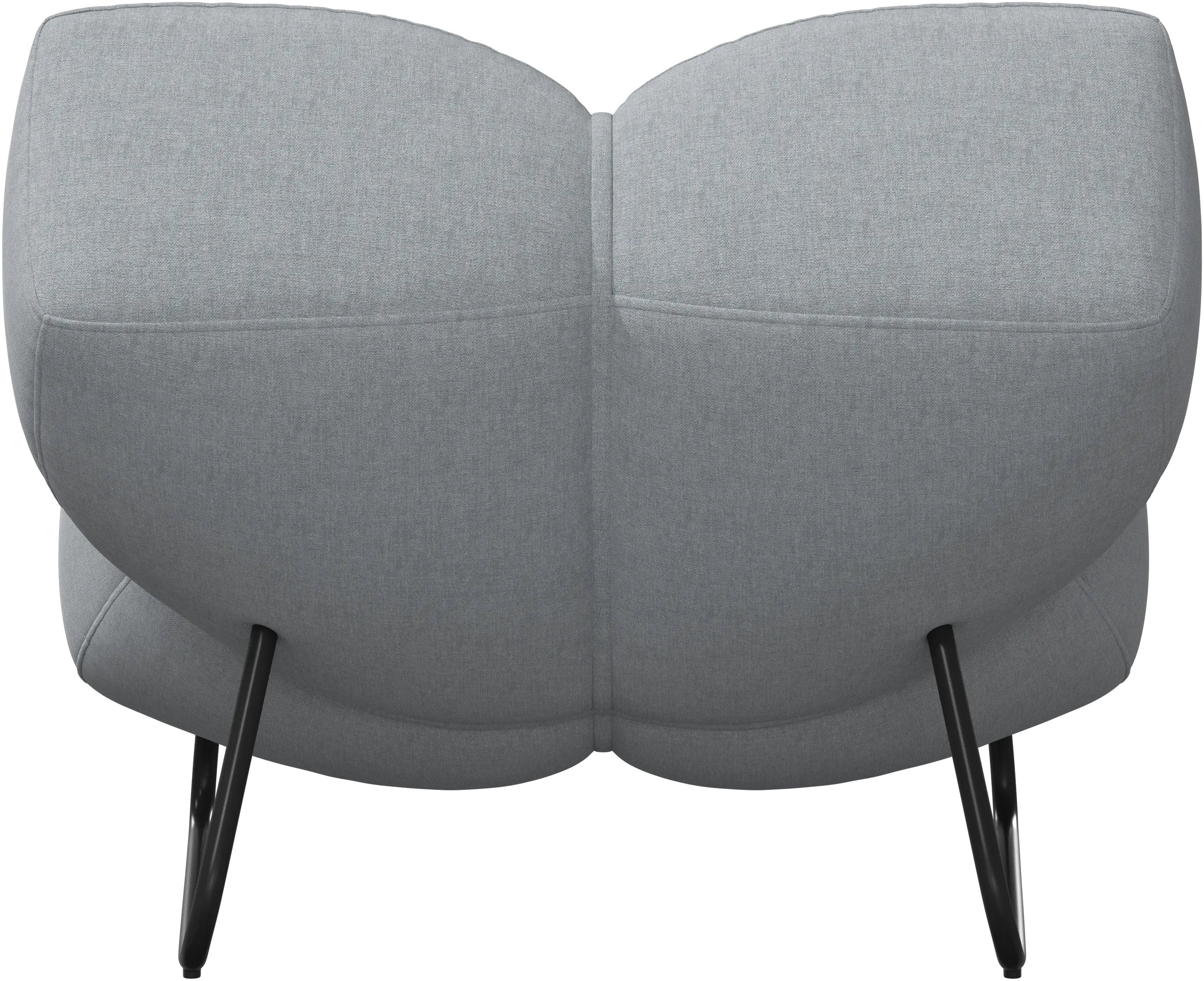 Black metal legs introduce a clean, contemporary contrast that sharpens the chair’s sculptural form – adding a refined, architectural finish ideal for bold, design-led spaces.