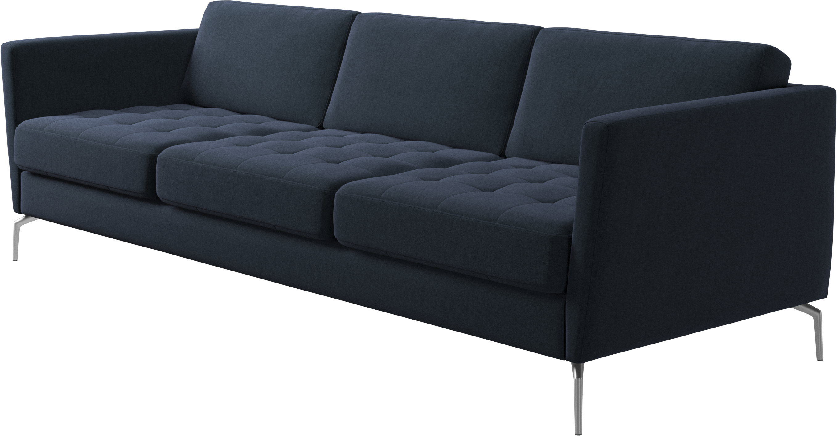 A light look and slim proportions make the Osaka sofa perfect for small homes, while a subtle feminine look and a touch of 60s design ensure that the Osaka sofa still packs a style punch. The beautiful tufted seats add visual softness and bring a classic look to your living room. Inclined armrests give the sofa a modern, unique look and open it up to the rest of the room. Cosy up with your family or claim the sofa all to yourself with this roomy 3 seater sofa.