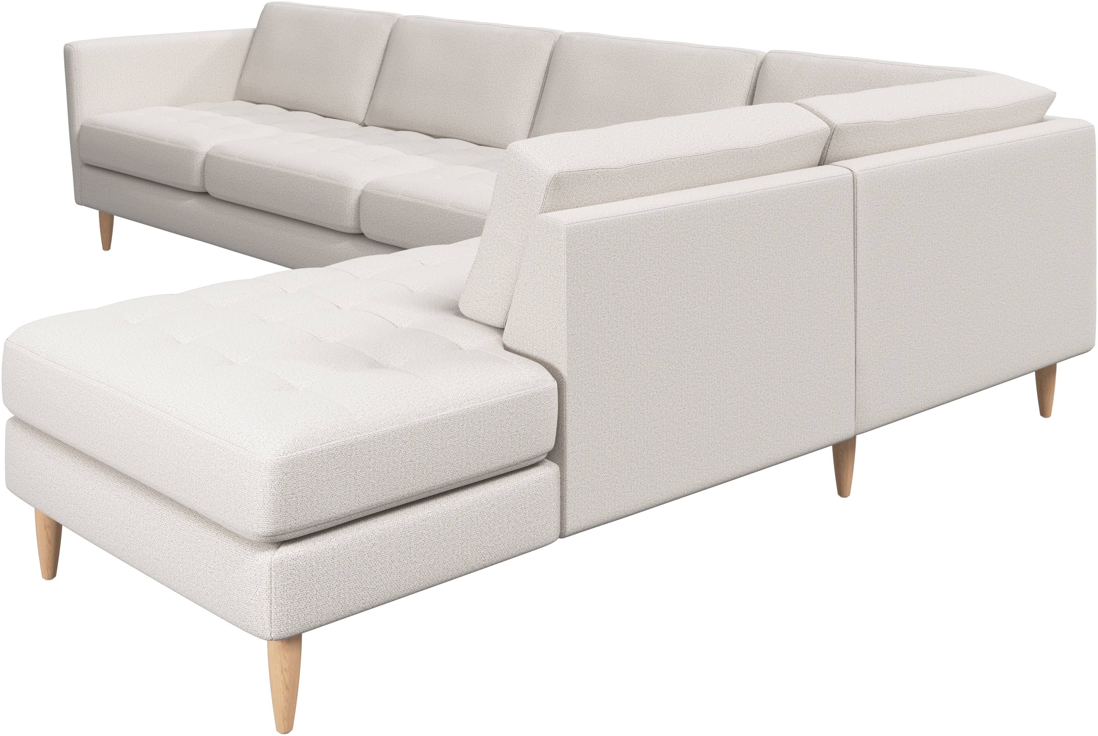 A light look and slim proportions make the Osaka sofa perfect for small homes, while a subtle feminine look and a touch of 60s design ensure that the Osaka sofa still packs a style punch. The beautiful tufted seats add visual softness and bring a classic look to your living room. Inclined armrests give the sofa a modern, unique look and open it up to the rest of the room. With plenty of room for the entire family this corner sofa will be the hero of your living room. The open end will create a dynamic, welcoming atmosphere - a true blessing for the integrated areas of open-plan living. Put your feet up, stretch out or use it as an extra seat – you won’t be sorry for choosing this comfortable chaise longue sofa.