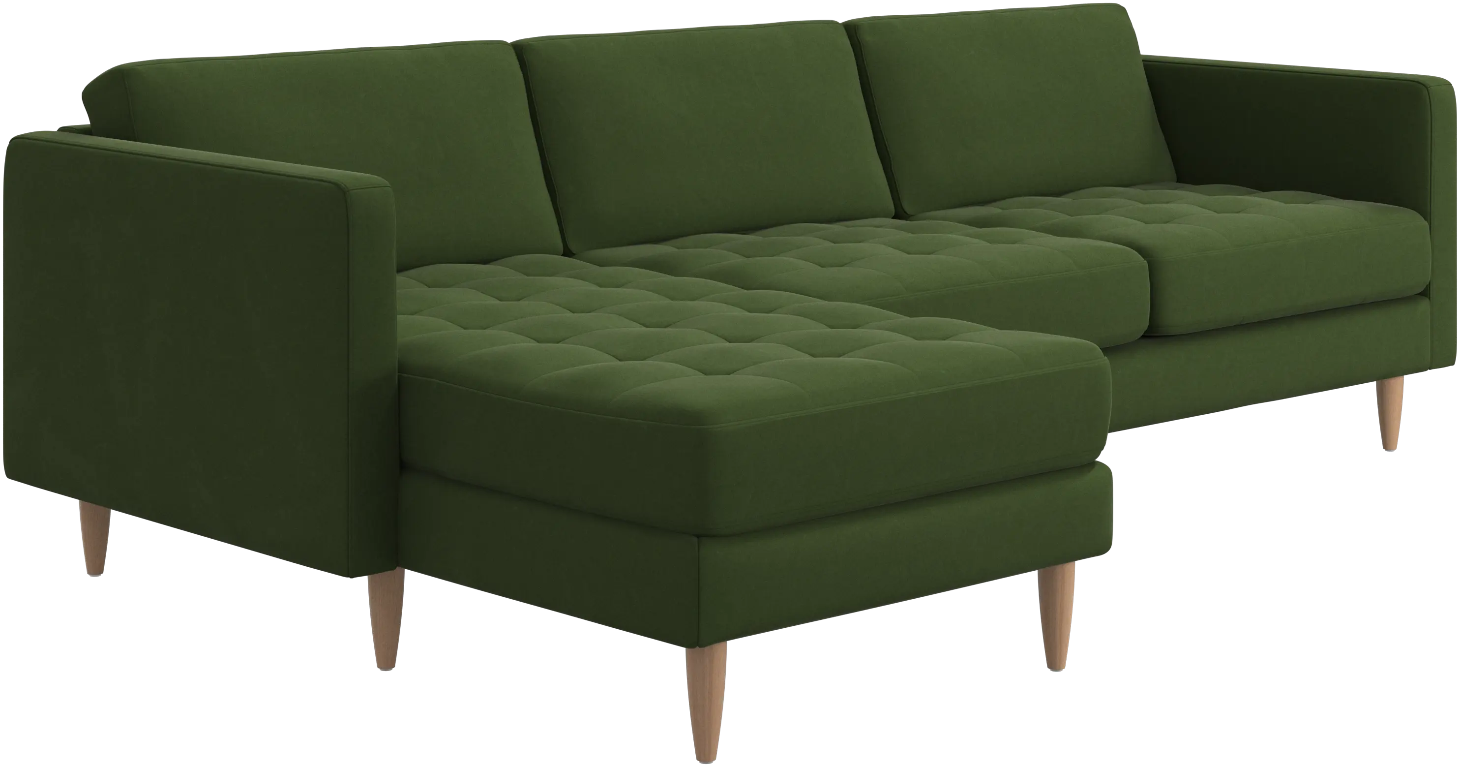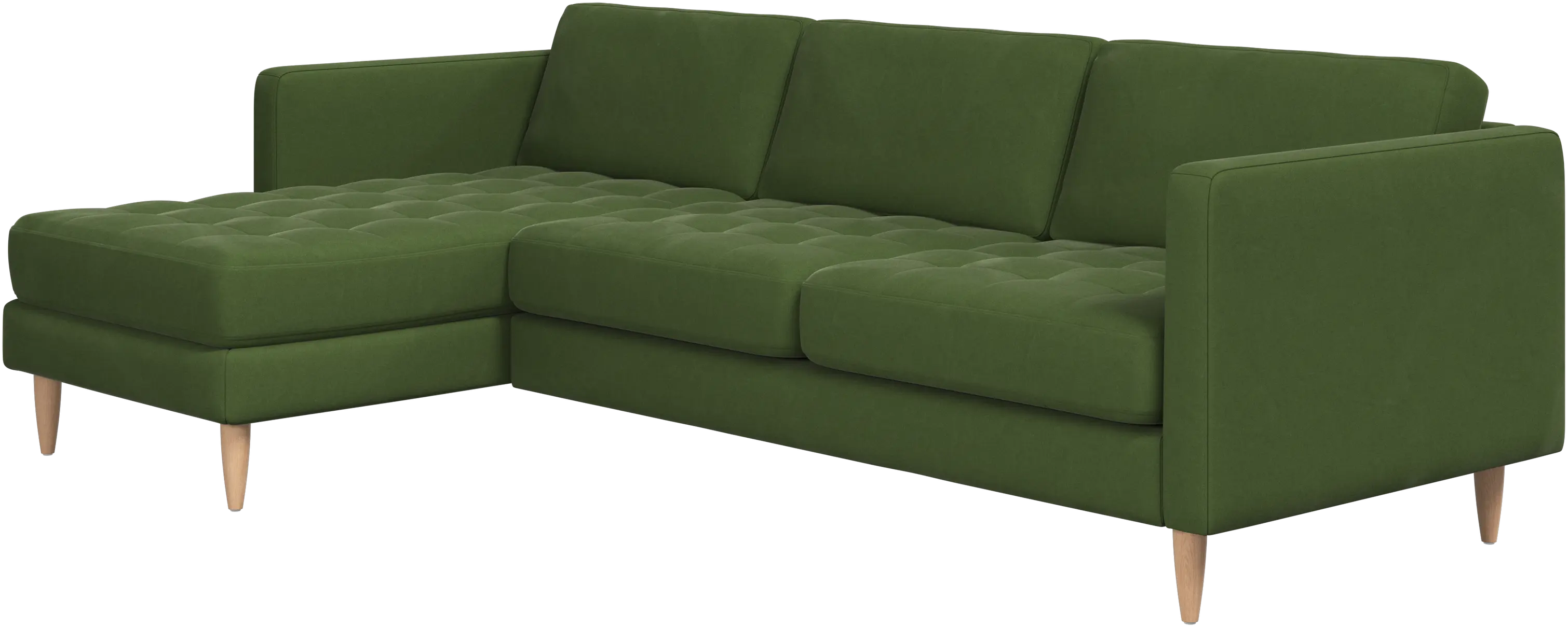 A light look and slim proportions make the Osaka sofa perfect for small homes, while a subtle feminine look and a touch of 60s design ensure that the Osaka sofa still packs a style punch. The beautiful tufted seats add visual softness and bring a classic look to your living room. The classic, straight armrests emphasise the clean lines and Scandinavian look. Put your feet up, stretch out or use it as an extra seat – you won’t be sorry for choosing this comfortable chaise longue sofa.