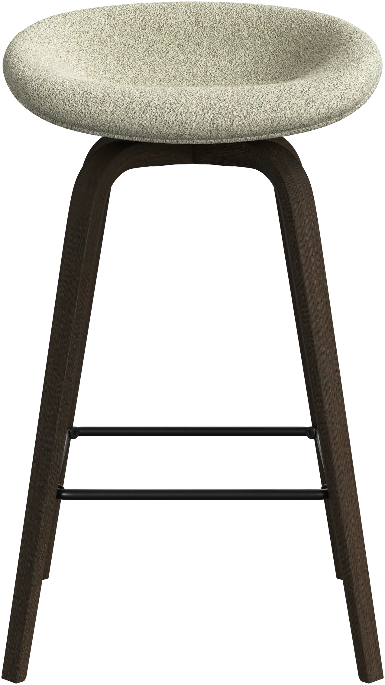 With a soft, organic form, the Hauge bar stool is your stylish solution for elevated seating. It has a fixed height to fit your home bar or open kitchen space and a metal footrest for contemporary comfort.